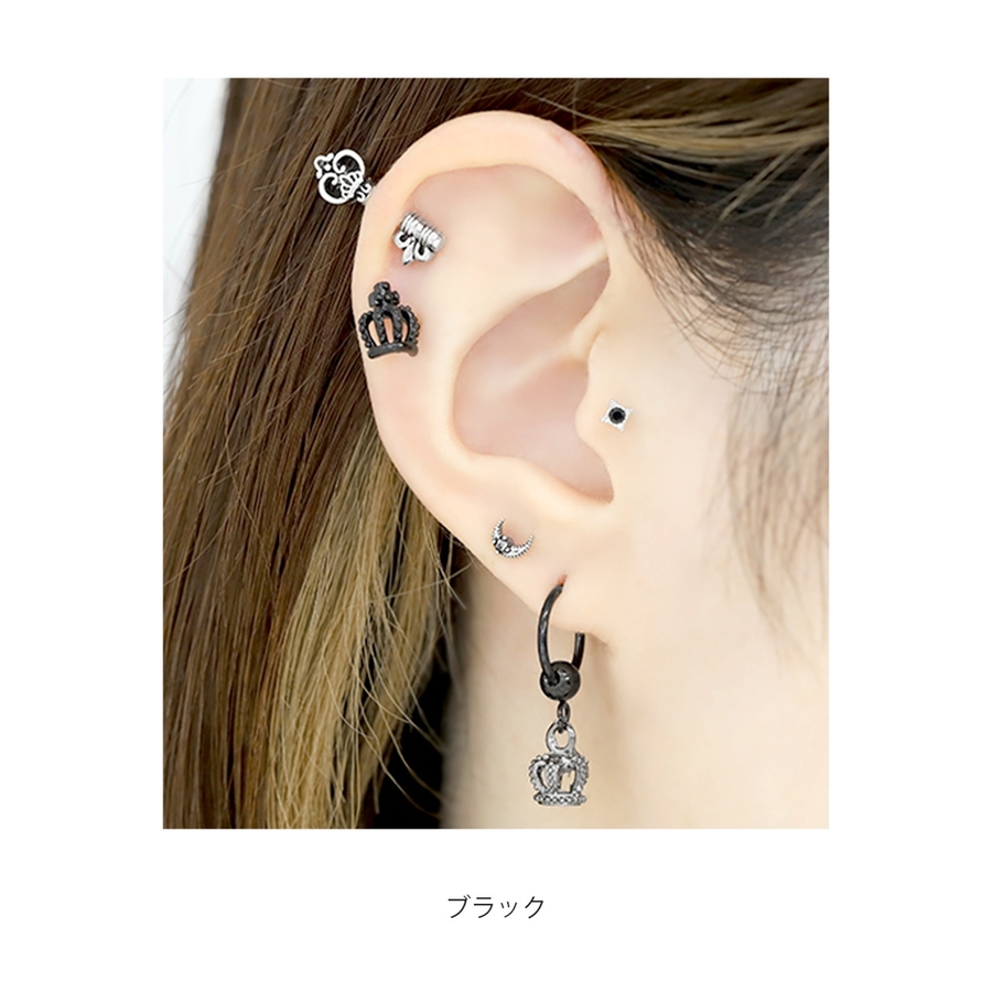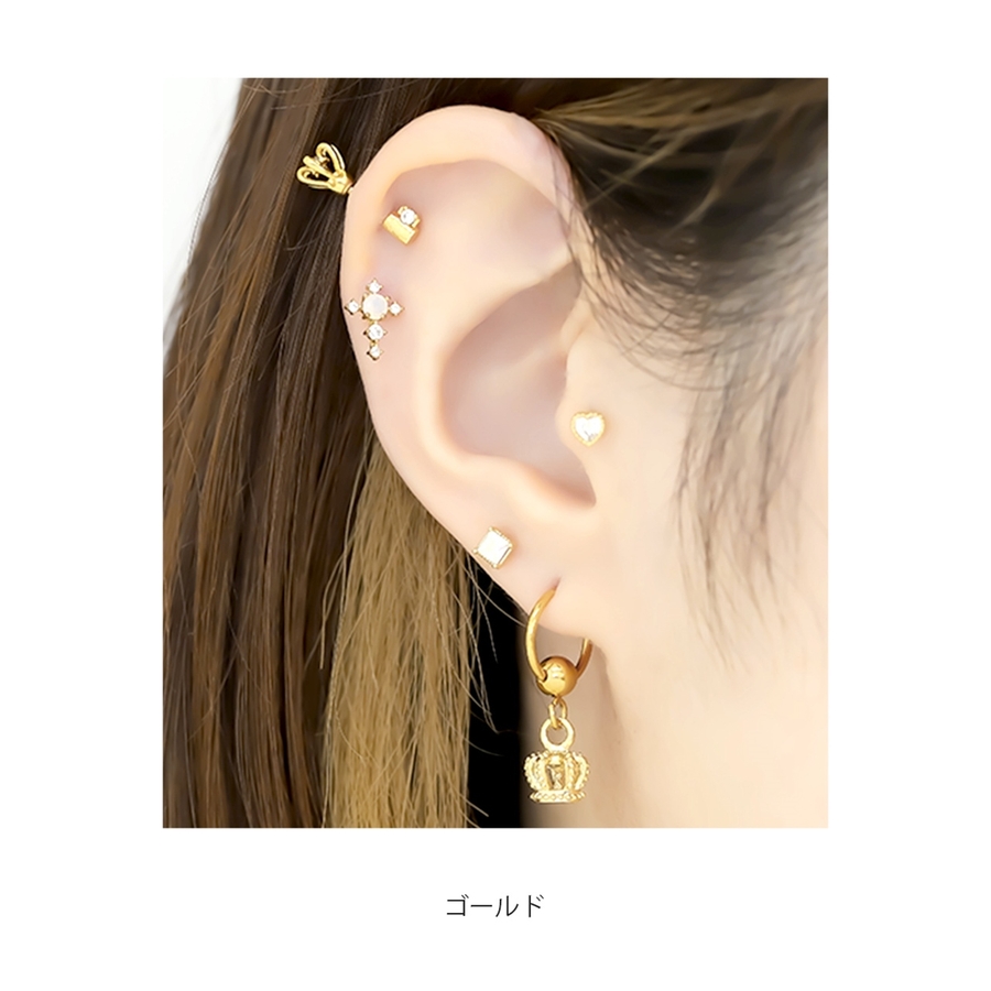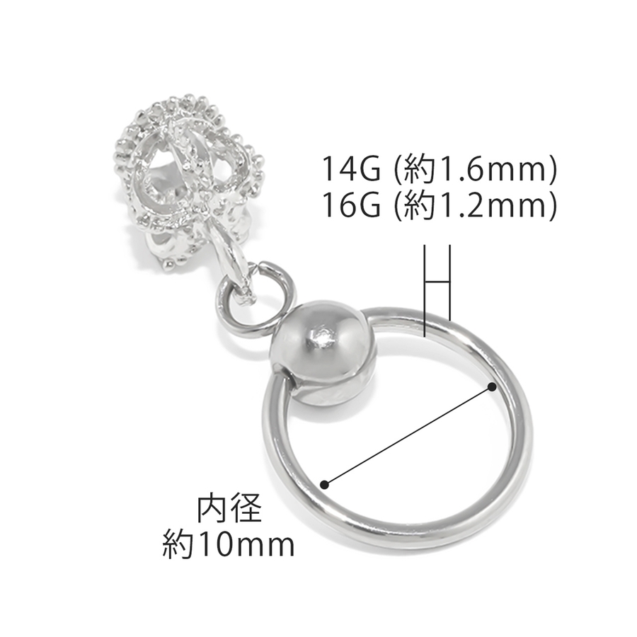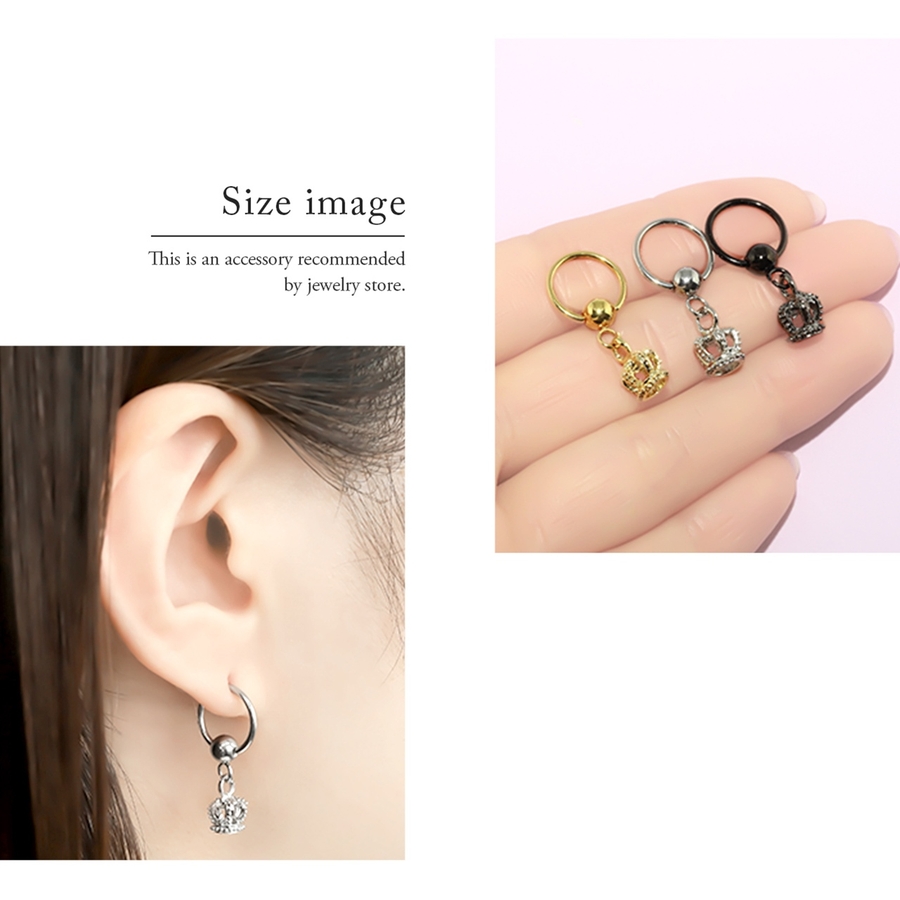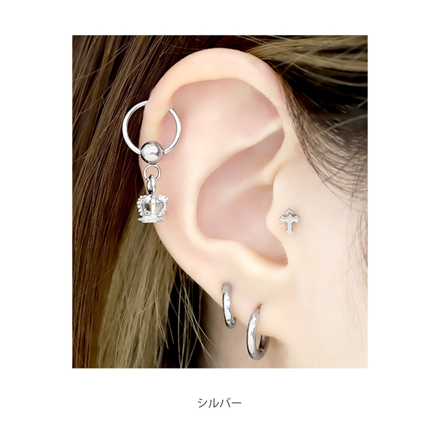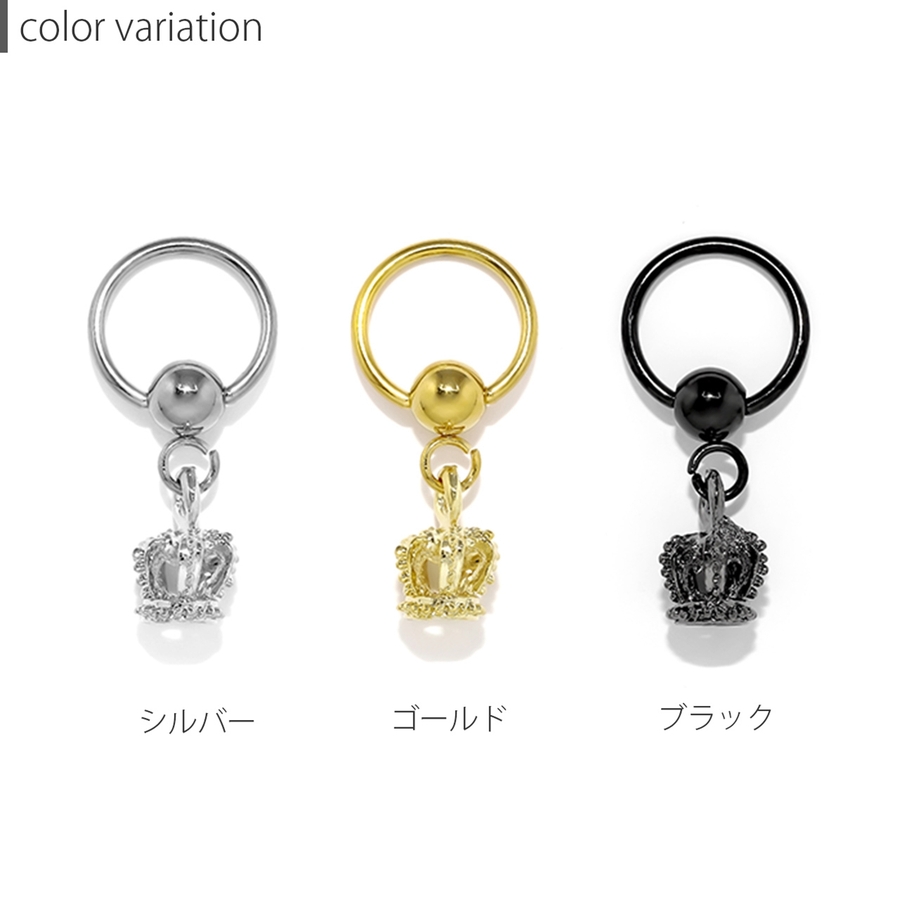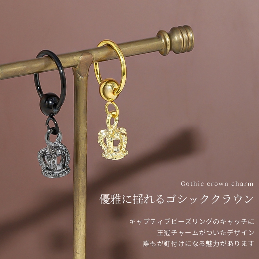 軟骨ピアス クラウン王冠チャーム立体的 キャプティブビーズリングボディピアス