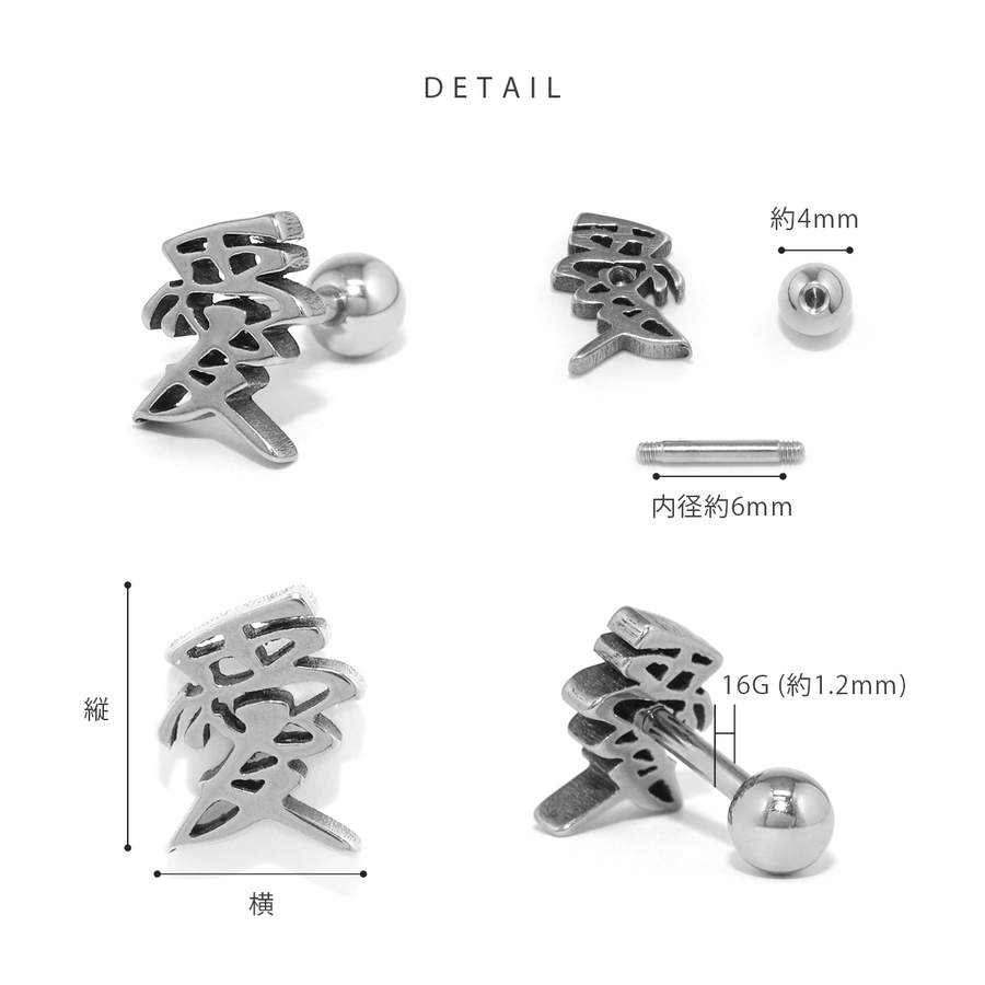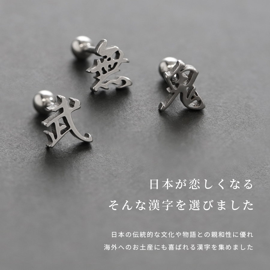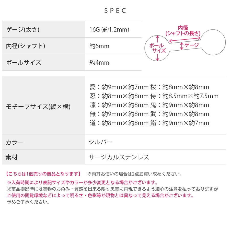 漢字モチーフボディピアス 愛桜忍侍凛鬼無武道鮨 ストレートバーベル