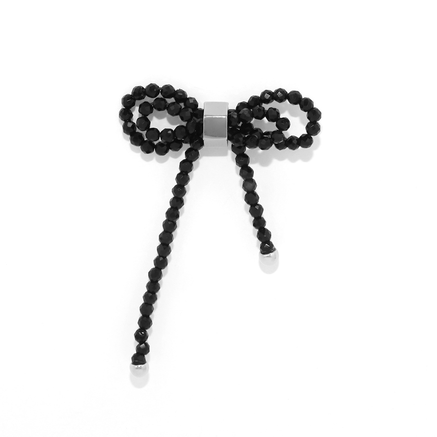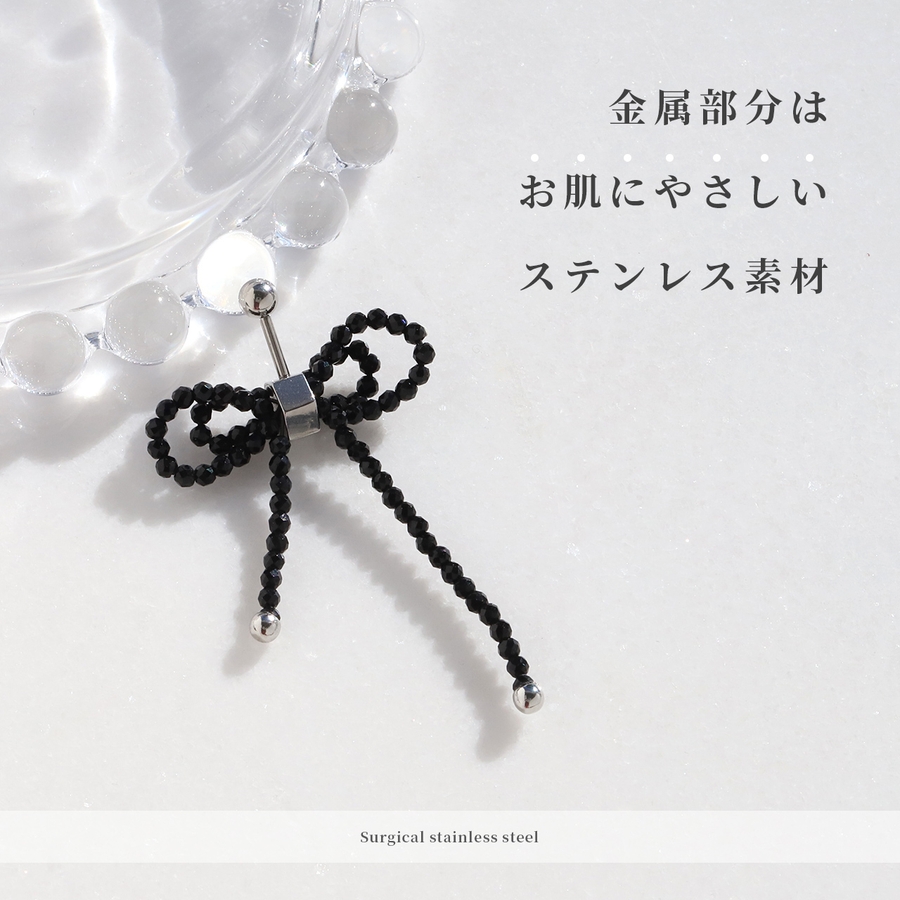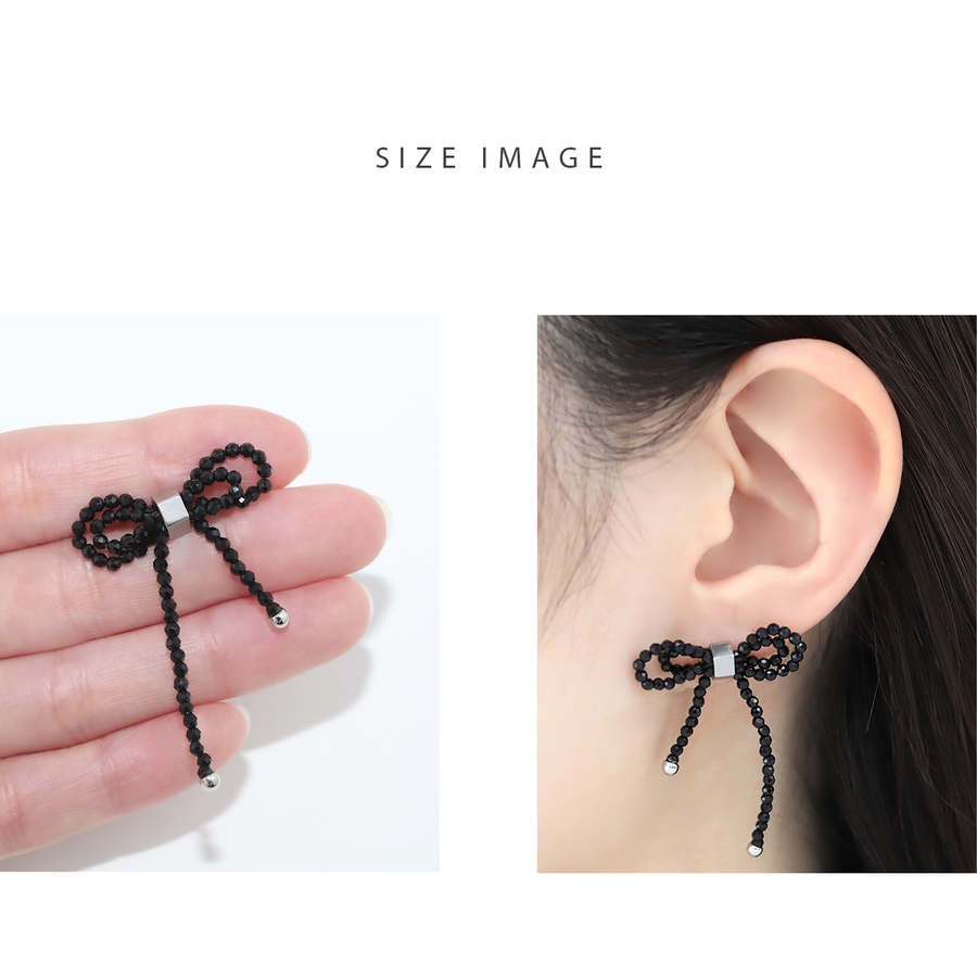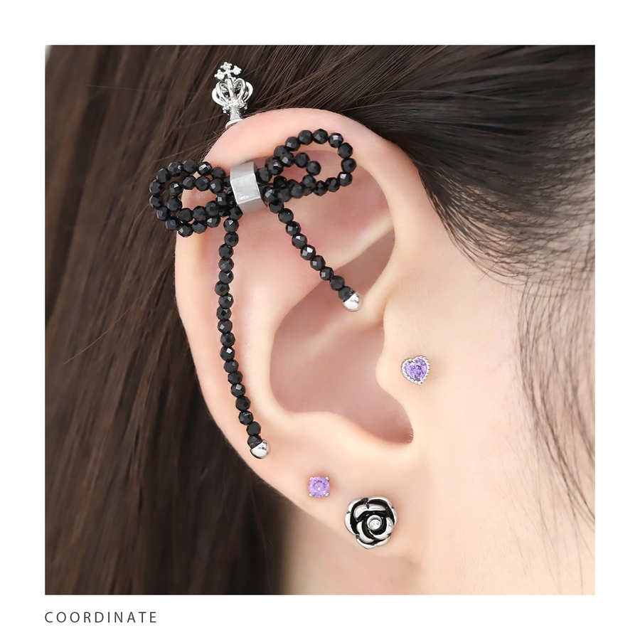 軟骨ピアス ビーズリボンかわいいブラック 大きめサイズバレエコア