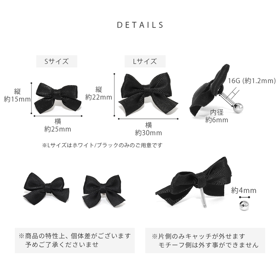 ボディピアス軟骨ピアス リボンサテンリボンバレエコア ストレートバーベル