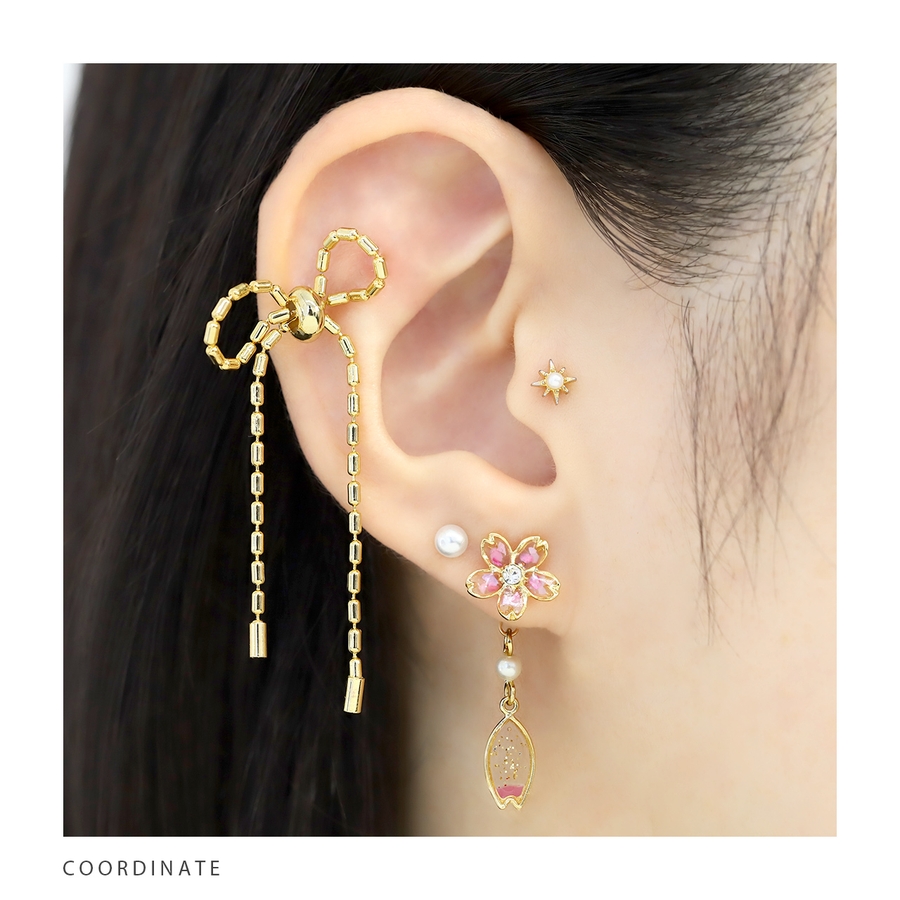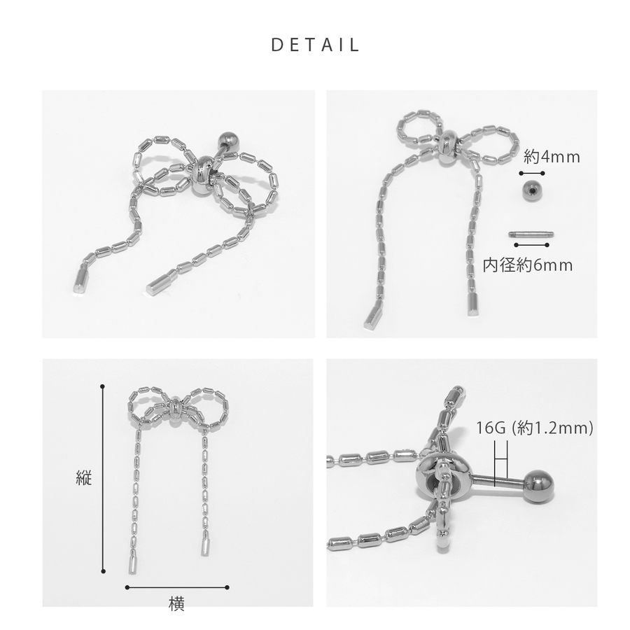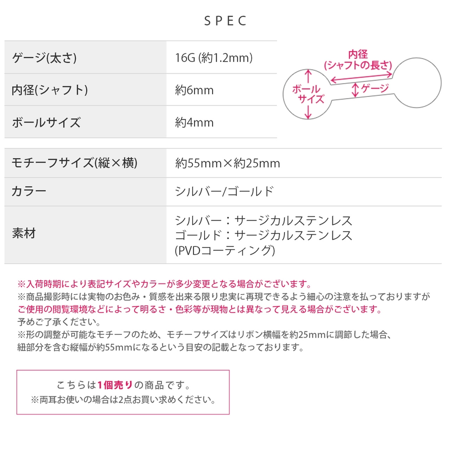 軟骨ピアス リボンバレエコアかわいいボールチェーン形状調節可 ボディピアス