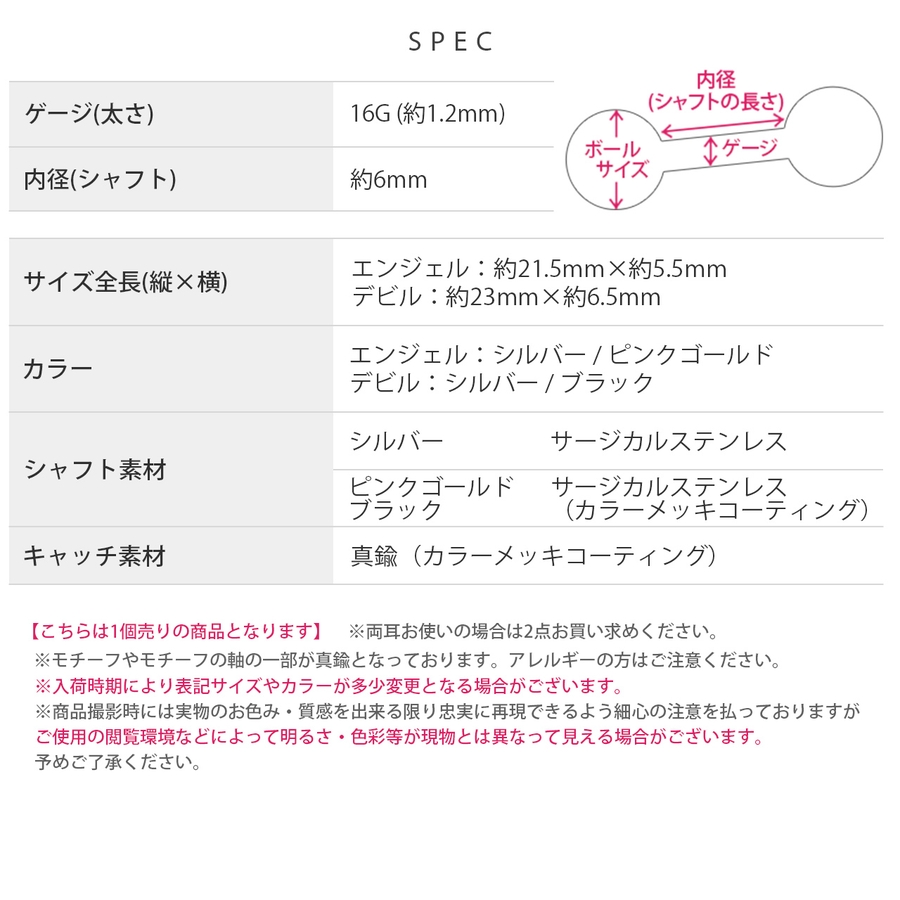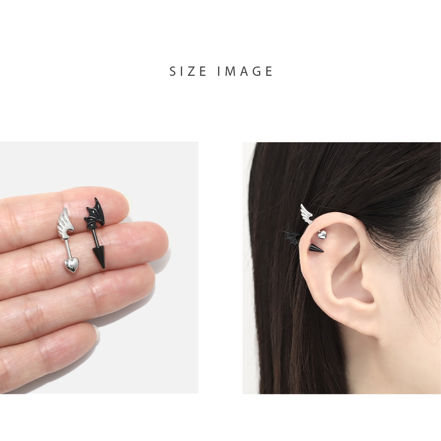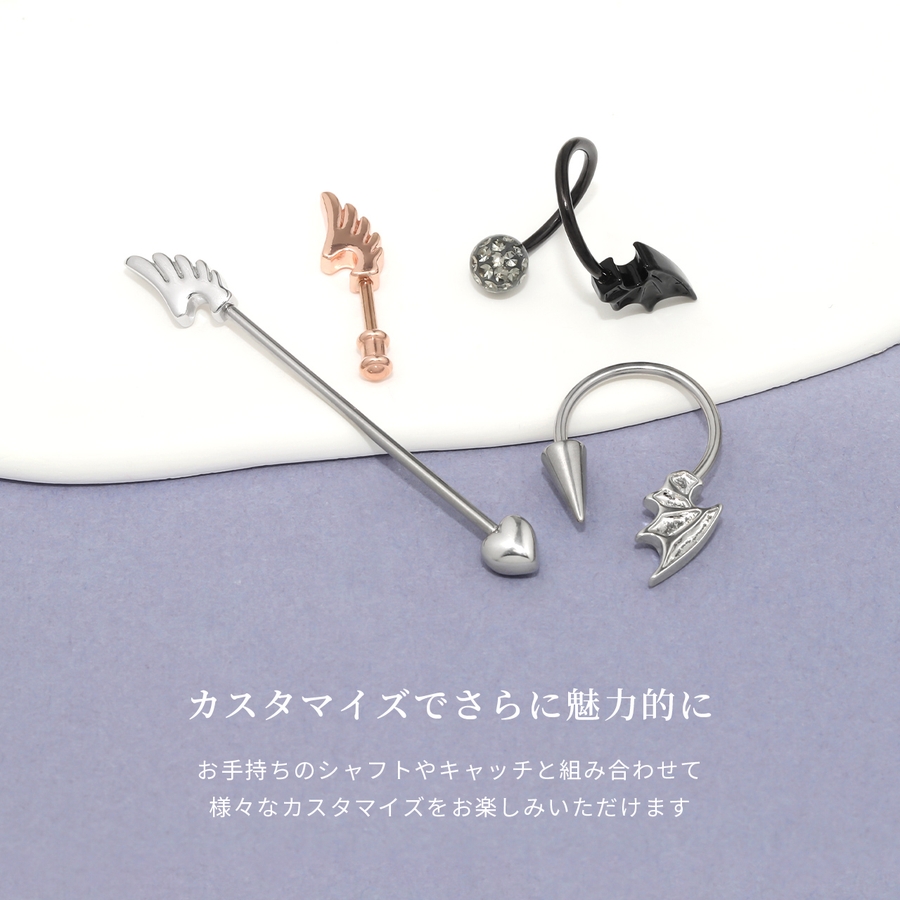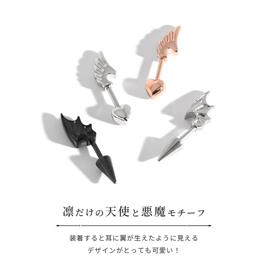 軟骨ピアス 天使悪魔エンジェルデビル羽翼ハートキャッチコーン ボディピアス