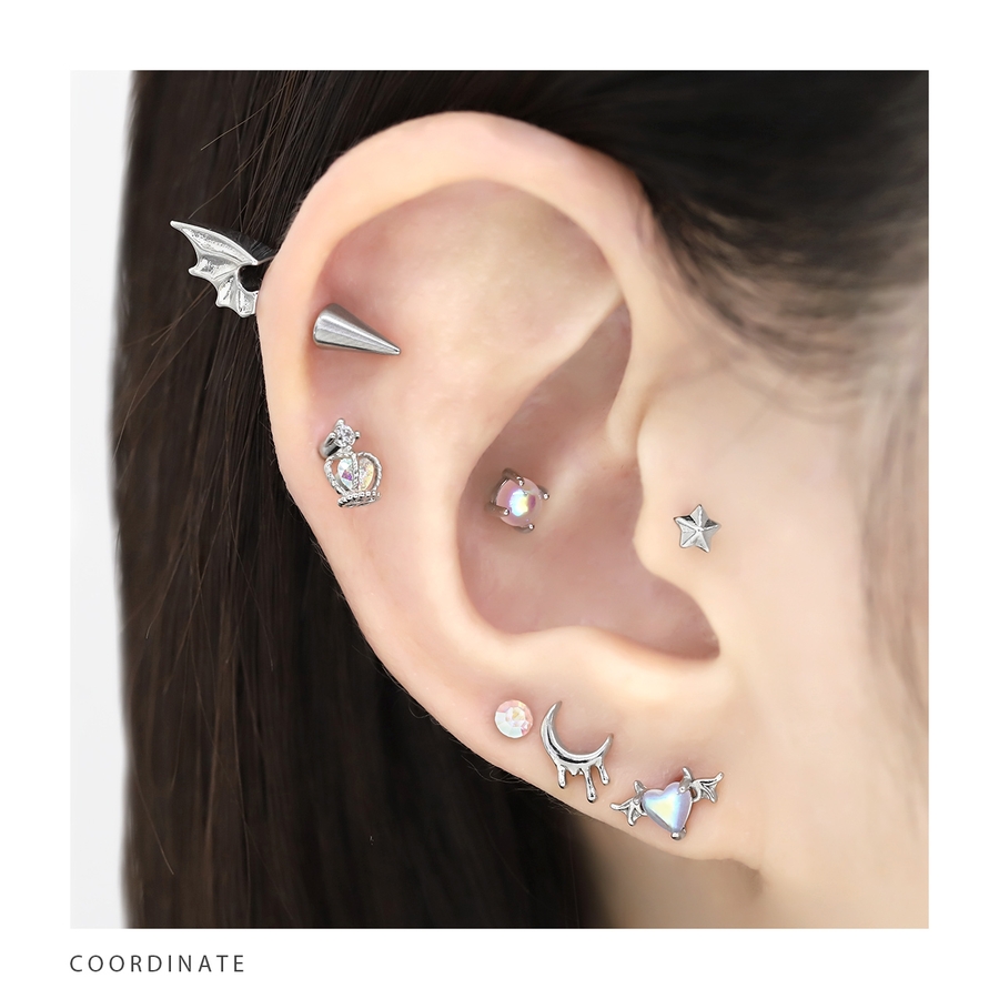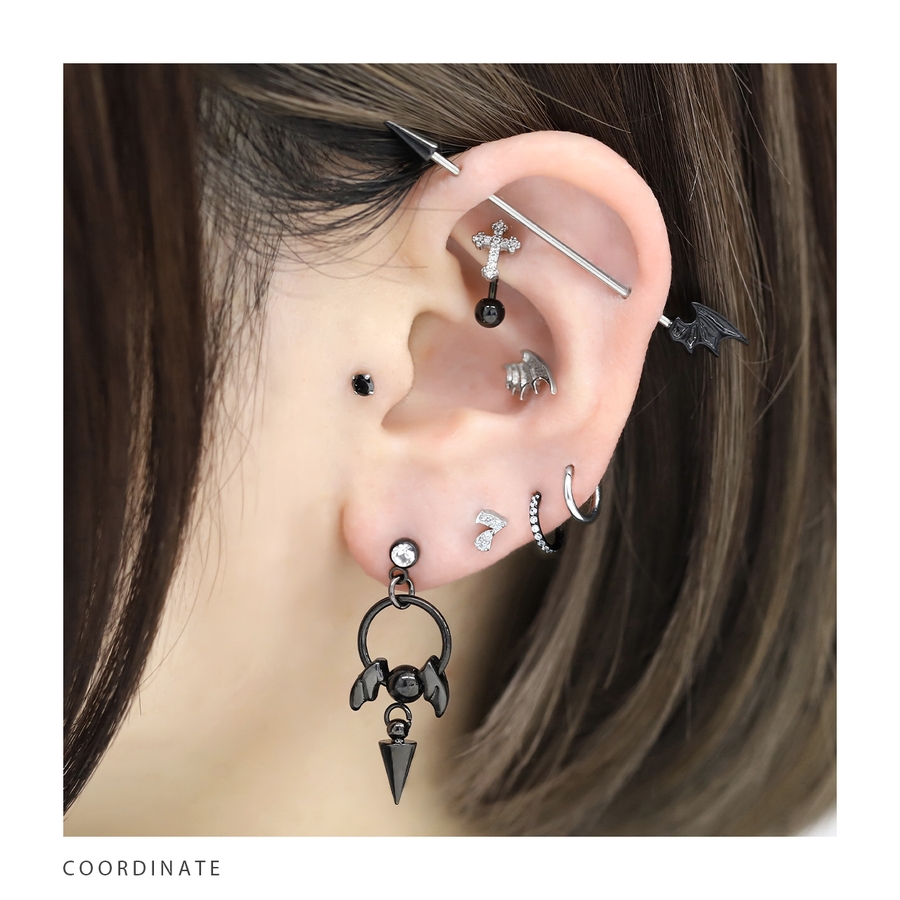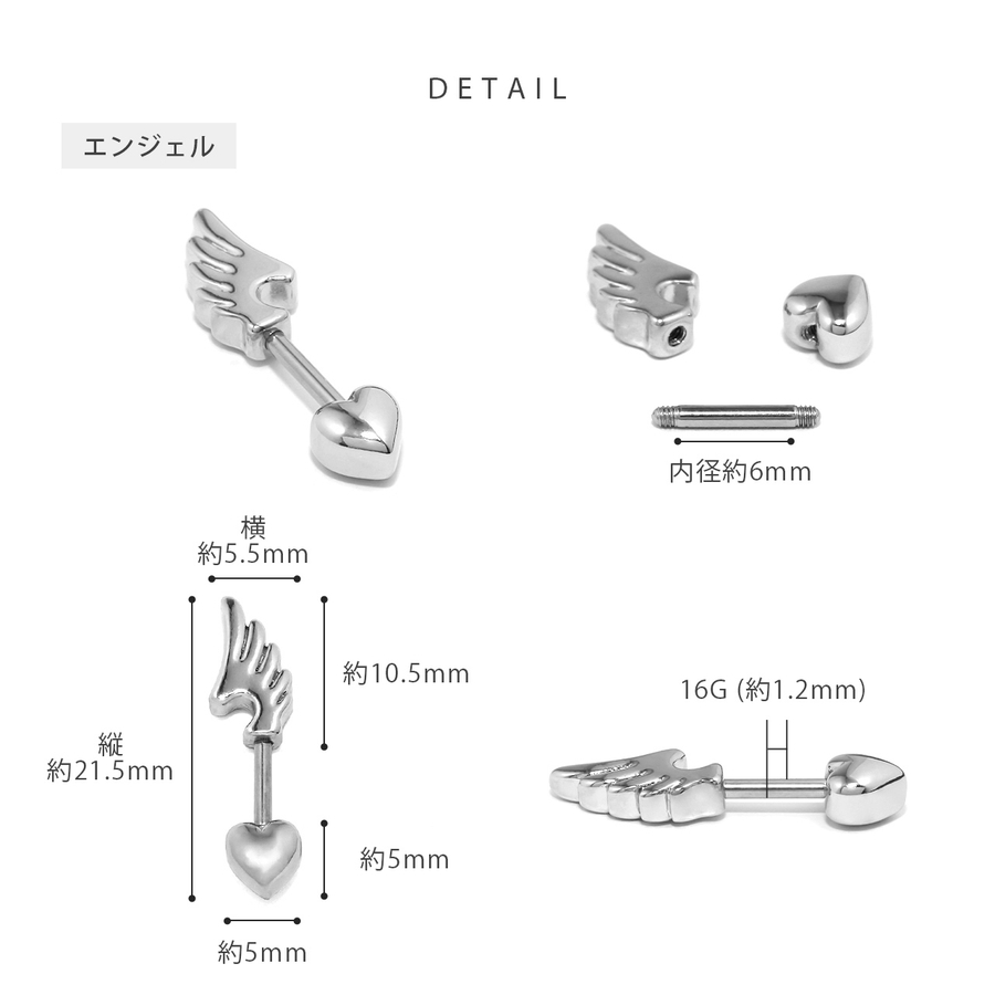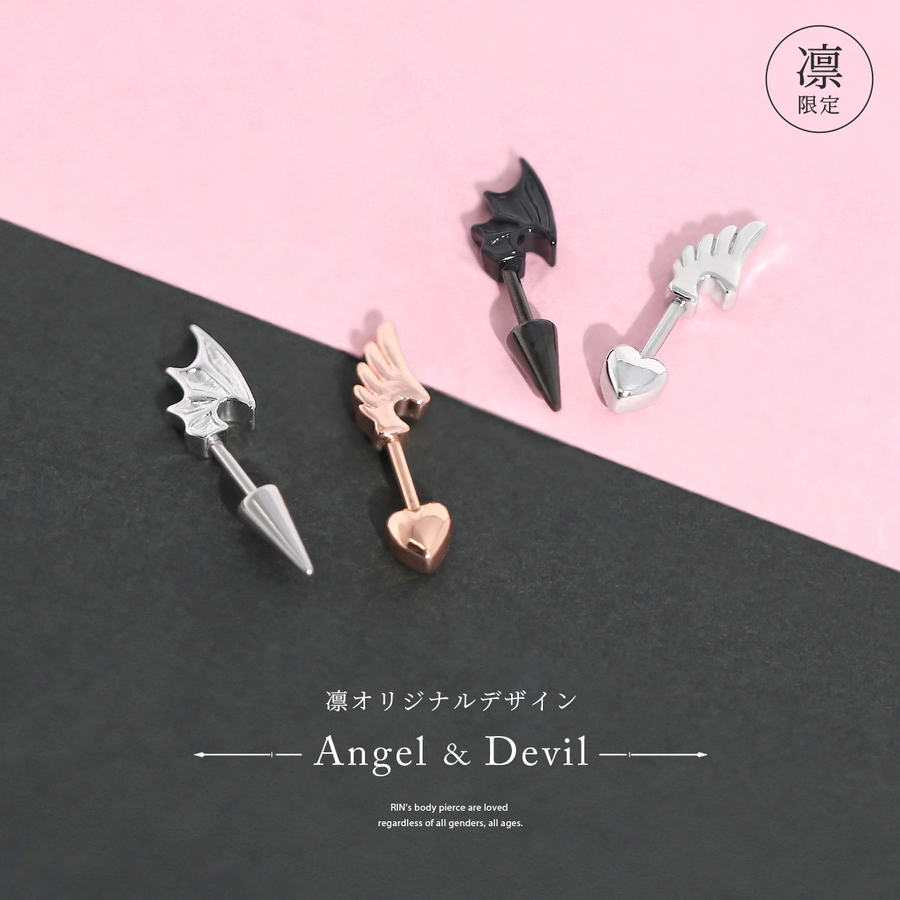 軟骨ピアス 天使悪魔エンジェルデビル羽翼ハートキャッチコーン ボディピアス