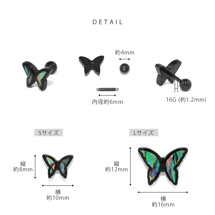 軟骨ピアス 蝶 螺鈿