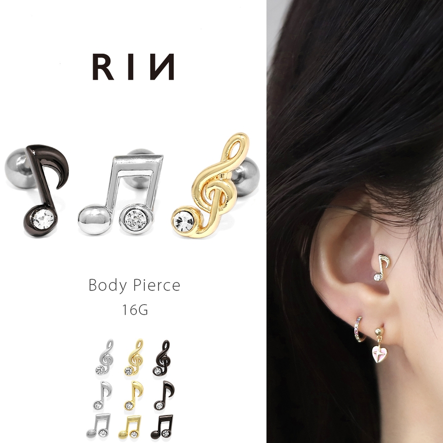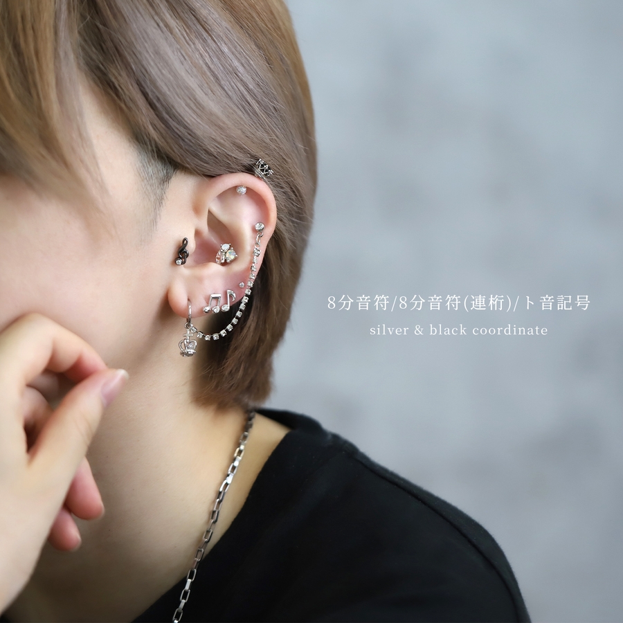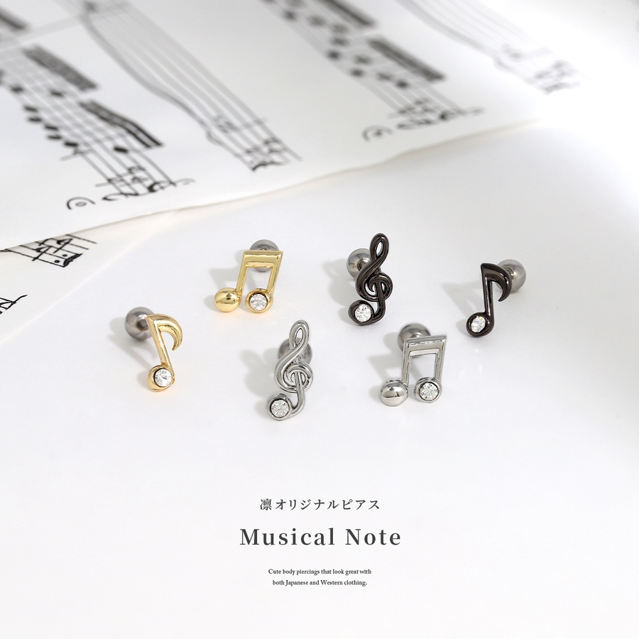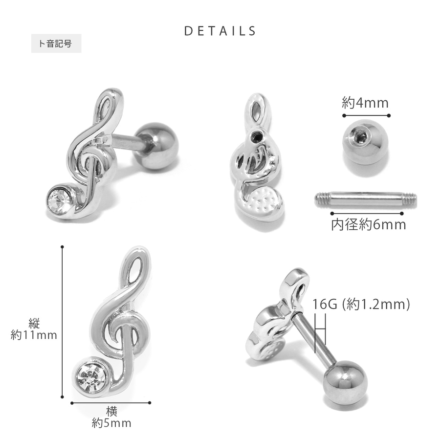 軟骨ピアス 音符ト音記号ジュエルキラキラサージカルステンレス ボディピアス