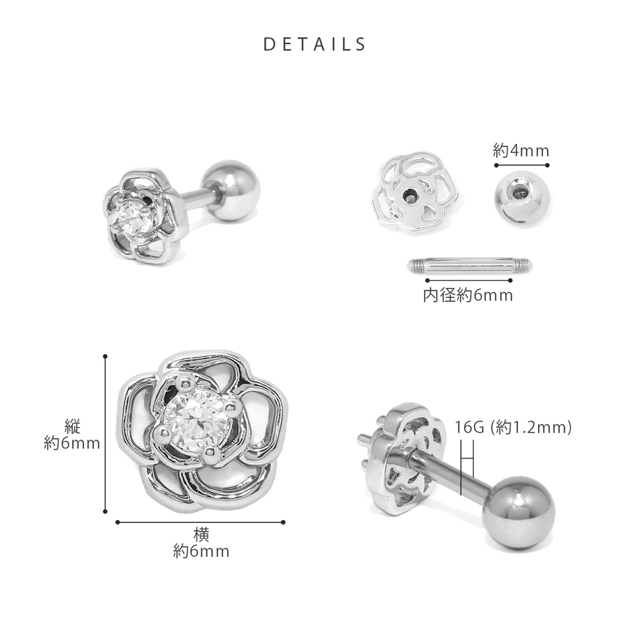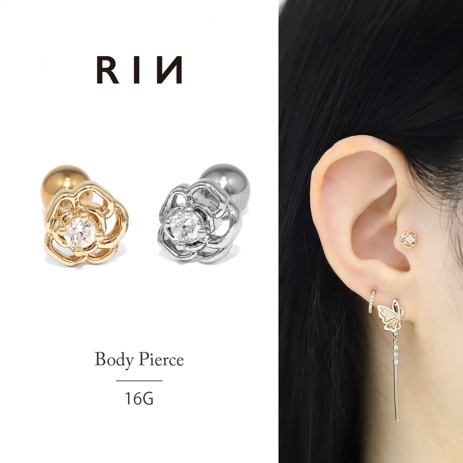 軟骨ピアス 薔薇バラ透かしデザインジュエル上品かわいい花 ボディピアス