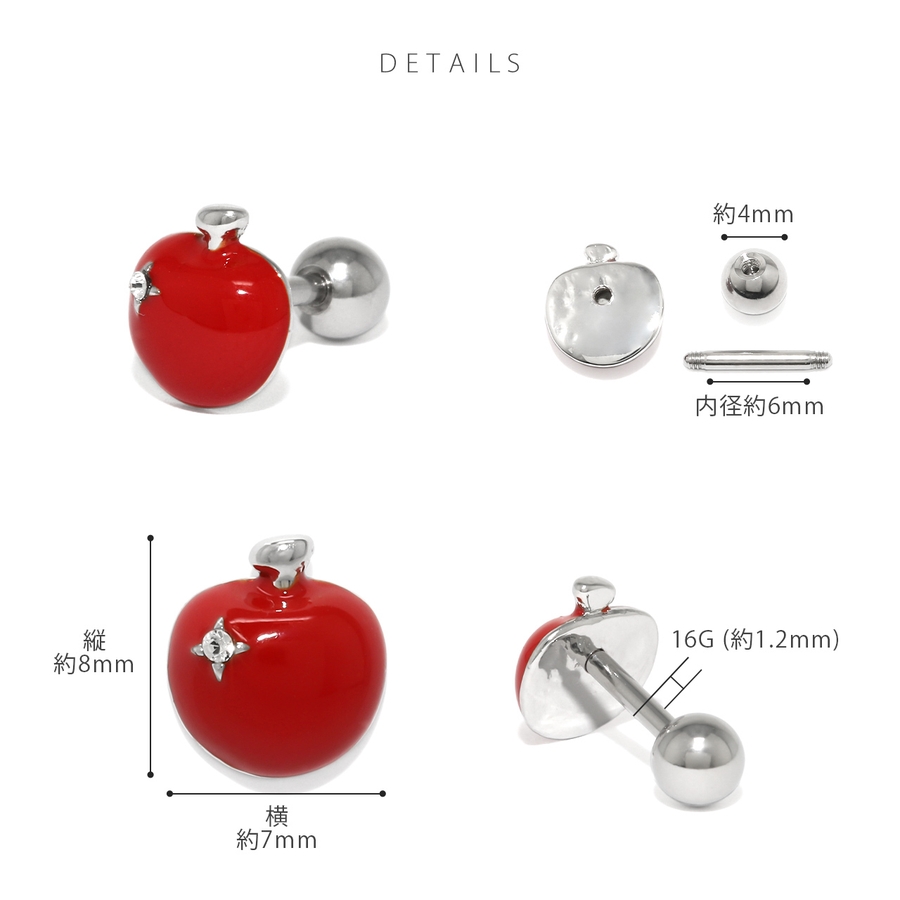 軟骨ピアス りんご青りんごジュエルリンゴアップル林檎フルーツ果物 ボディピアス
