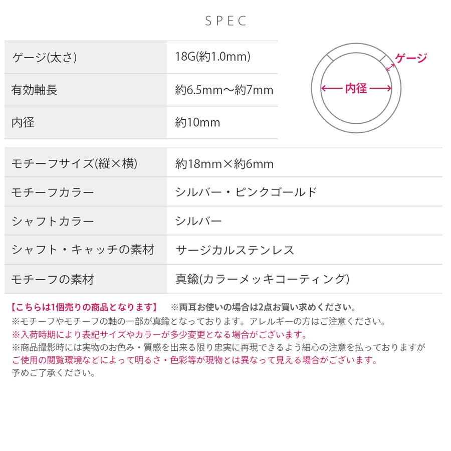 ※本商品の一部カラーは、カラーのメッキコーティングを施しています。体質によって着けたままにされますと、メッキコーティングが剥がれる可能性がございます。