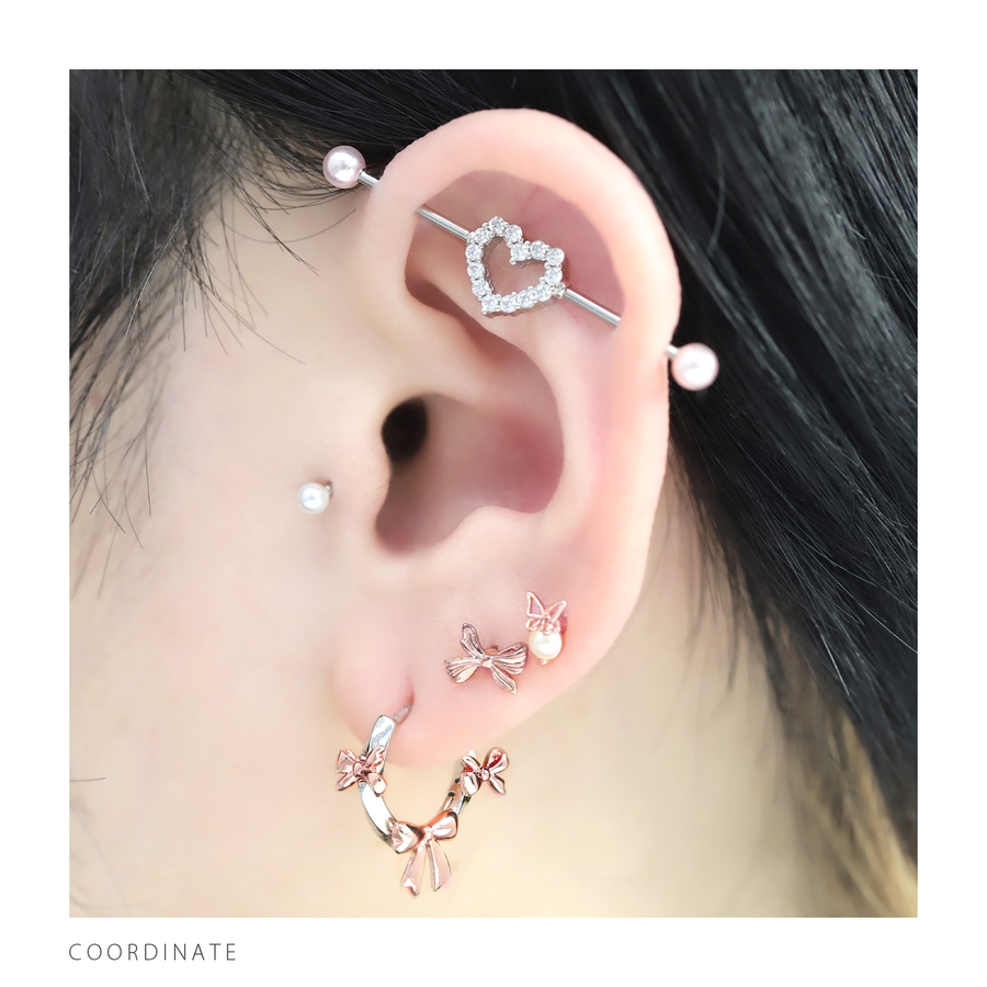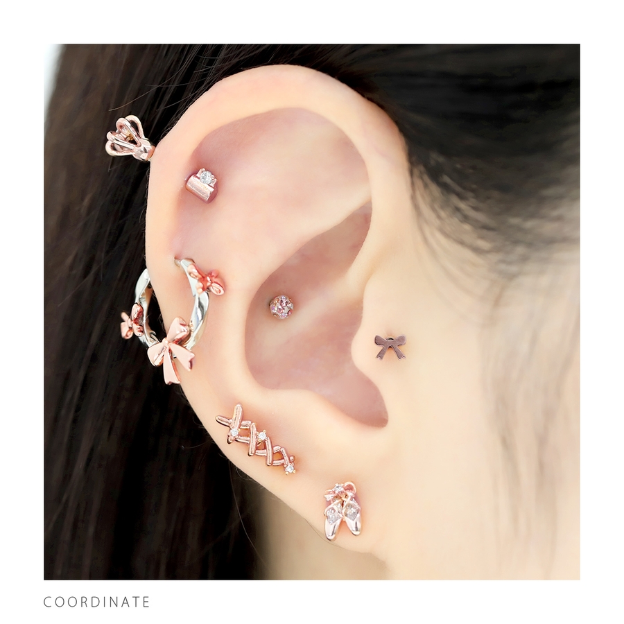 軟骨ピアス リボンりぼんフープシンプルバレエコアキャッチレスキュートかわいい ボ…