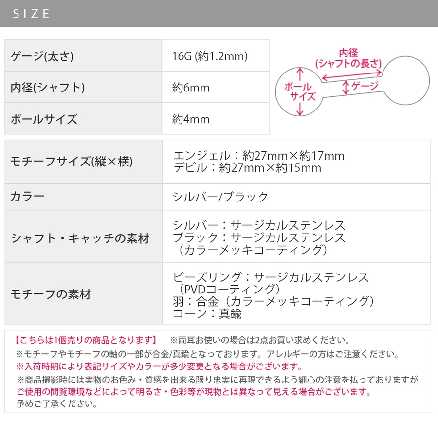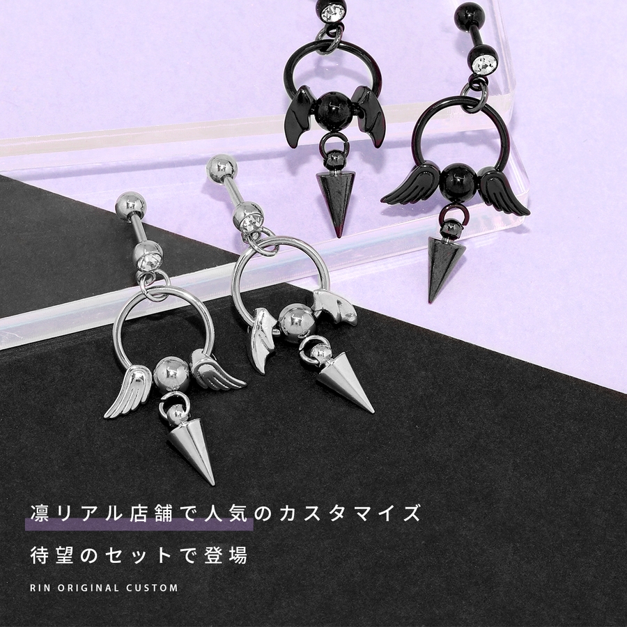軟骨ピアスカスタムセット エンジェルデビル天使悪魔 カスタムピアス可愛い人気