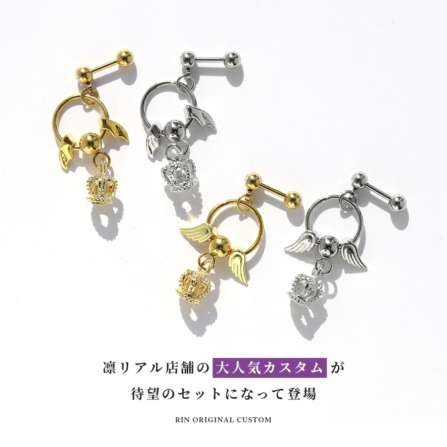 軟骨ピアスカスタムセット エンジェルデビル王冠天使悪魔 カスタムピアス可愛い人気
