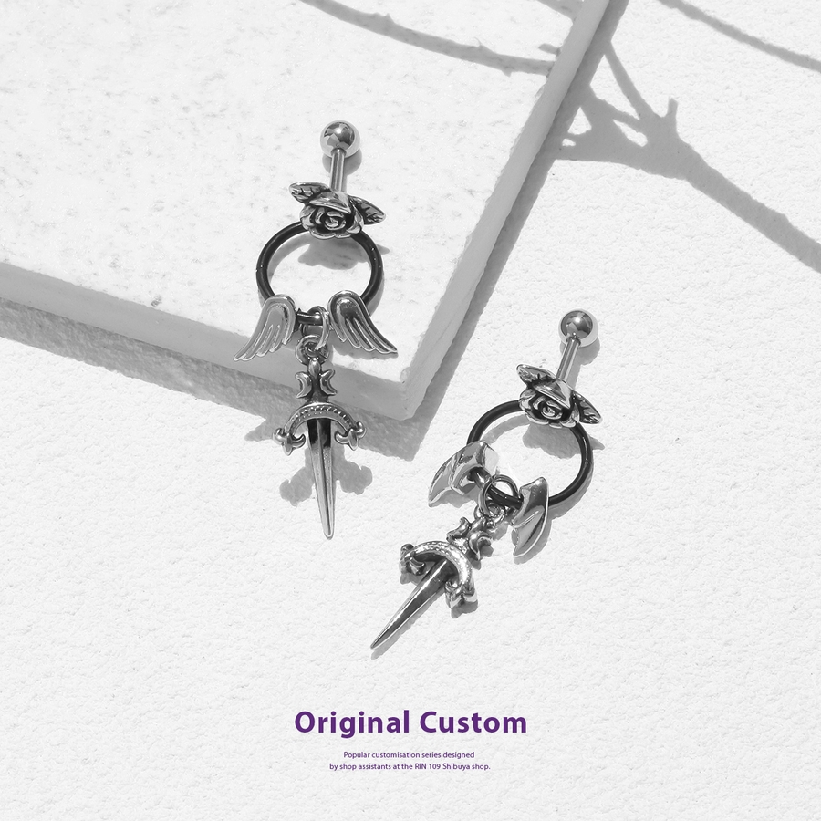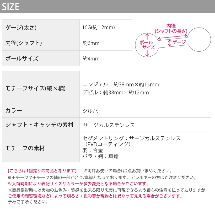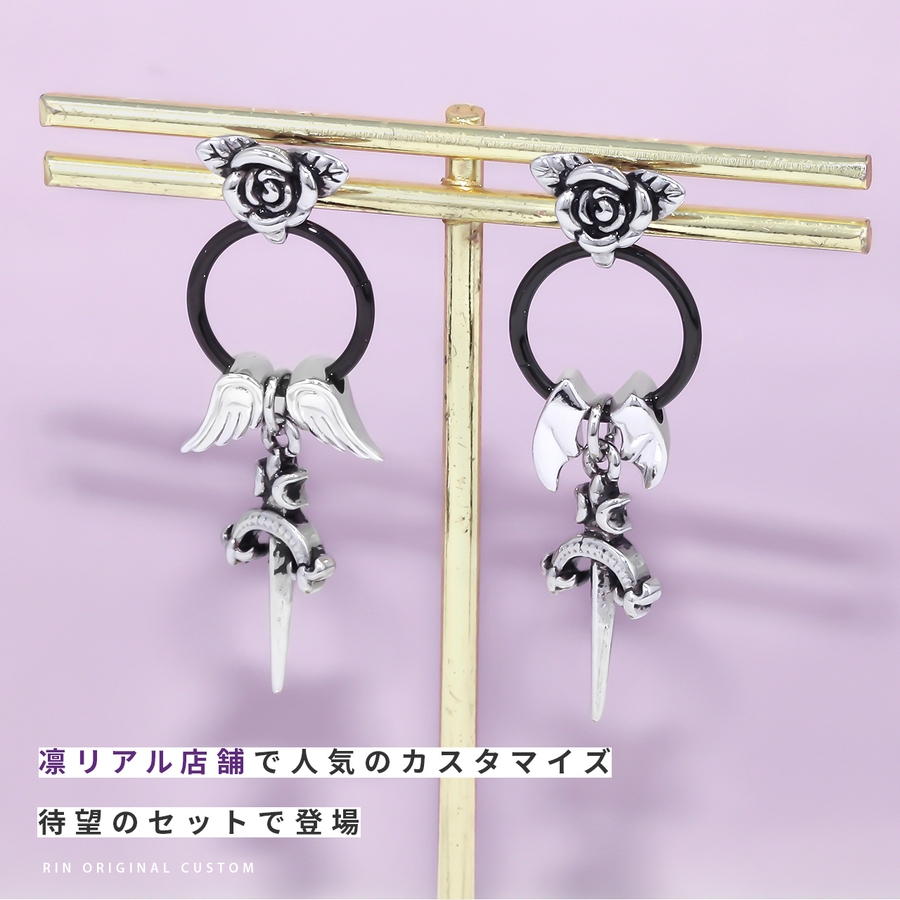 軟骨ピアスカスタムセット 薔薇バラ エンジェルデビル羽