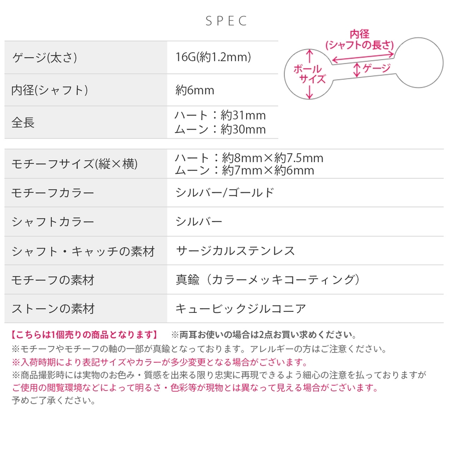 | モチーフ・カラー | ハート・シルバー / ハート・ゴールド / ムーン・シルバー / ムーン・ゴールド |