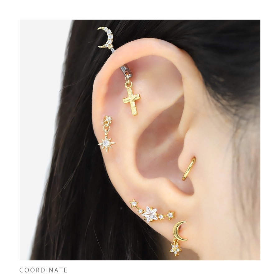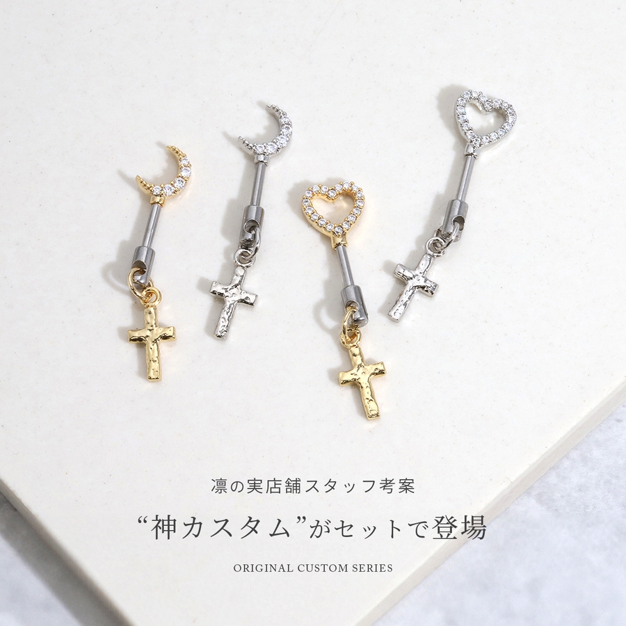 【セット】神カスタム 軟骨ピアス ハートムーンジュエルアンテナヘリックスクロスチ…
