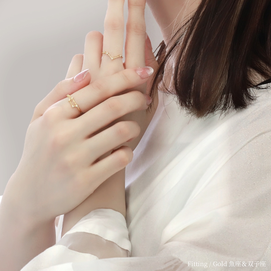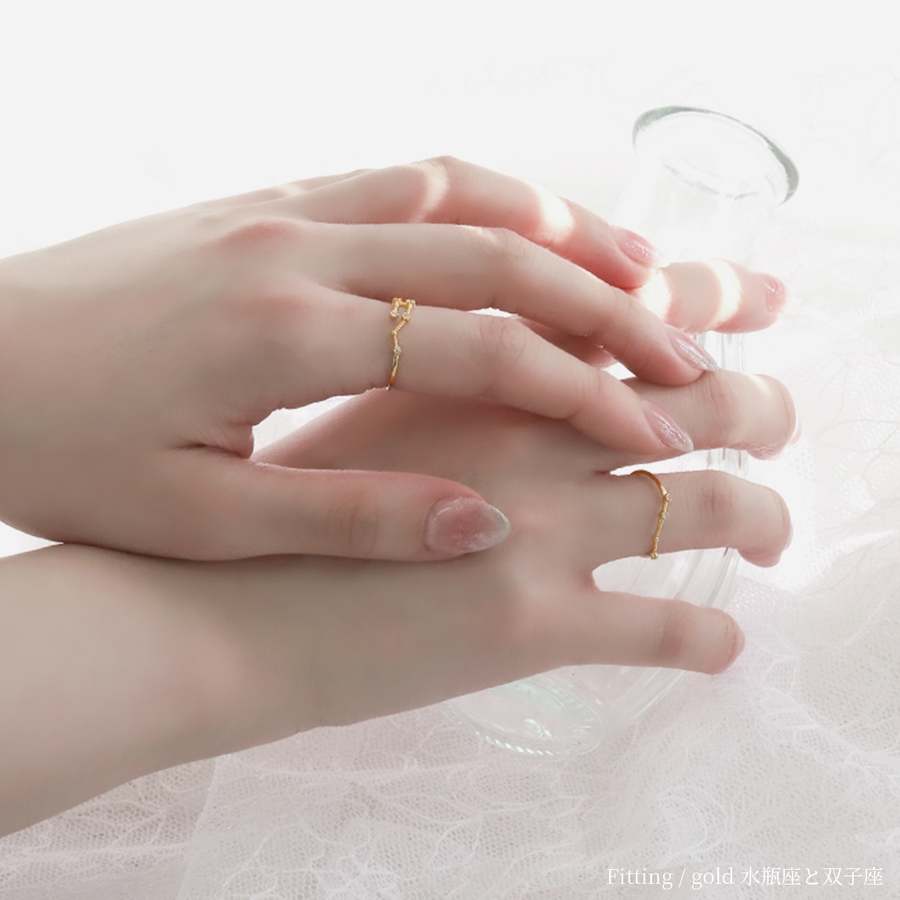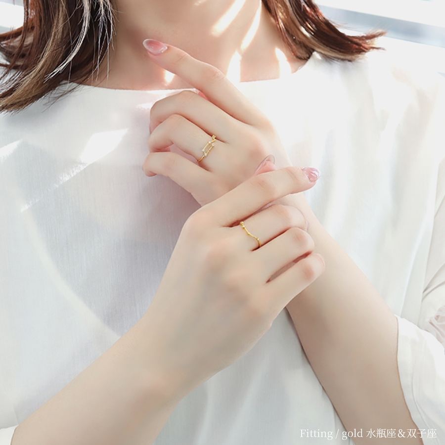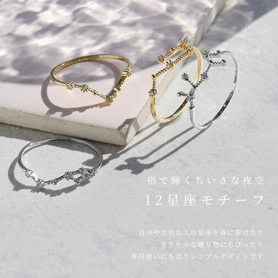 華奢なリングです。パッと見個性的で繊細なデザインで、よく見ると自分の星座モチーフというのが、特別感があってとても気に入りました。