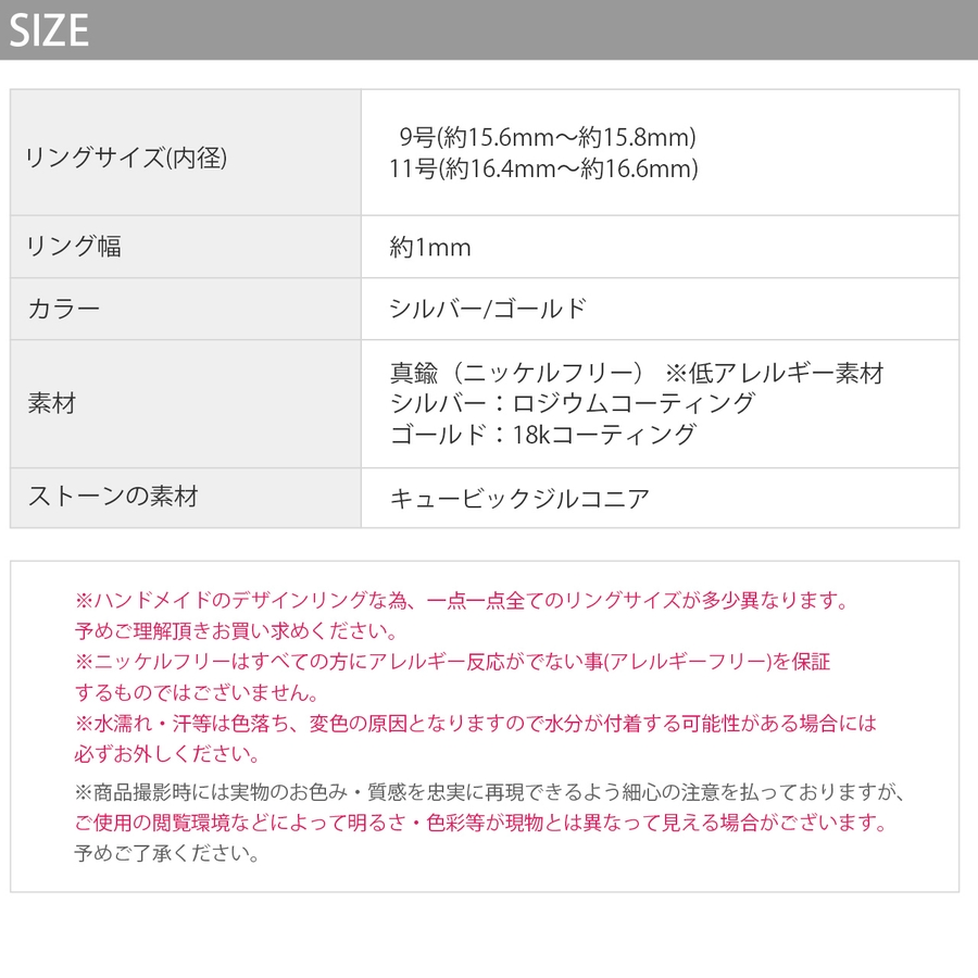 カラー・サイズ | シルバー・9号 / シルバー・11号 / ゴールド・9号 / ゴールド・11号 |