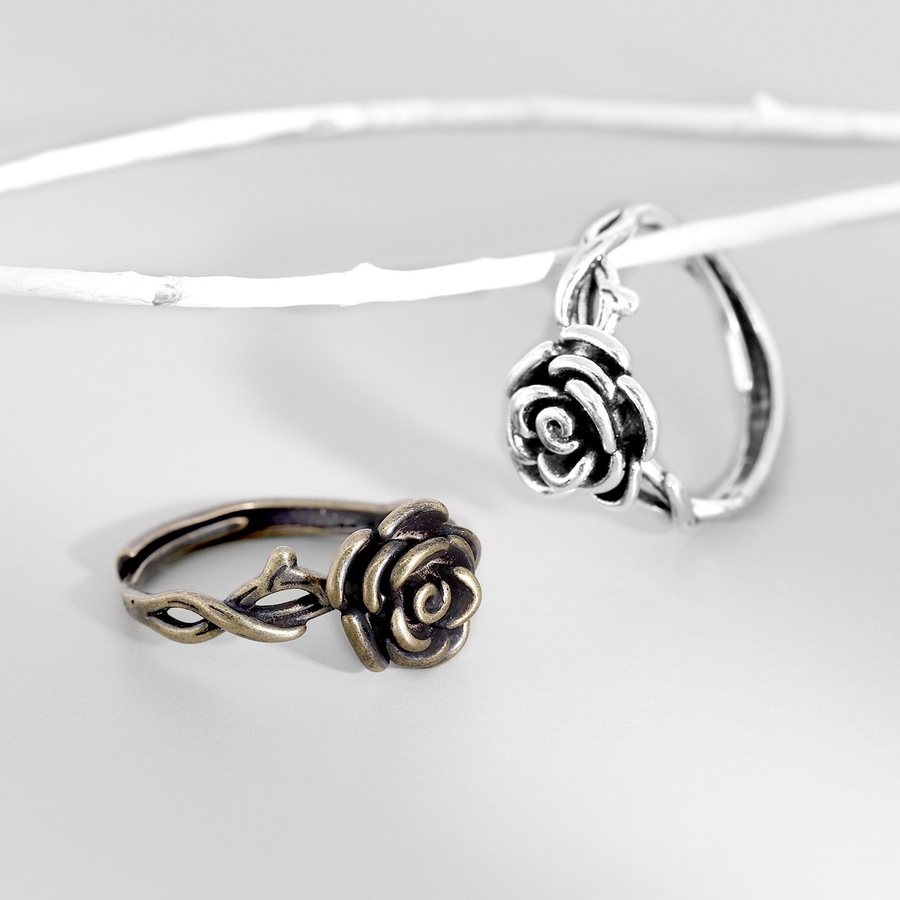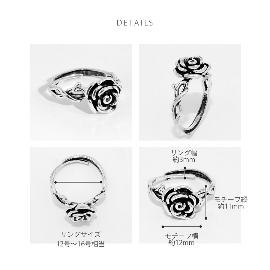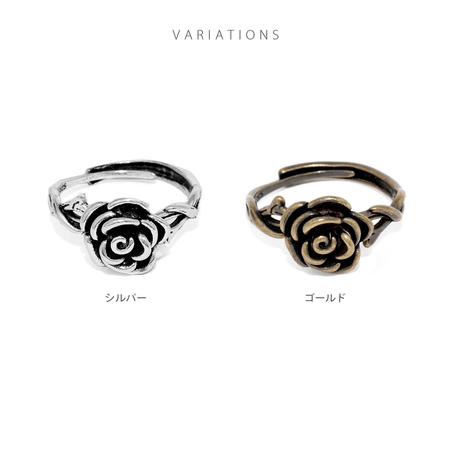 指輪リング アンティーク調ローズ薔薇モチーフバラスタイリッシュシルバーゴールド