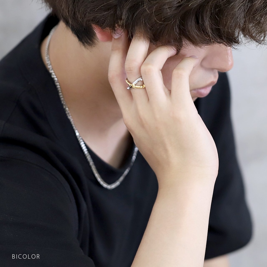 指輪リング クロスリングクロスモチーフシルバーバイカラースタイリッシュ オープン…