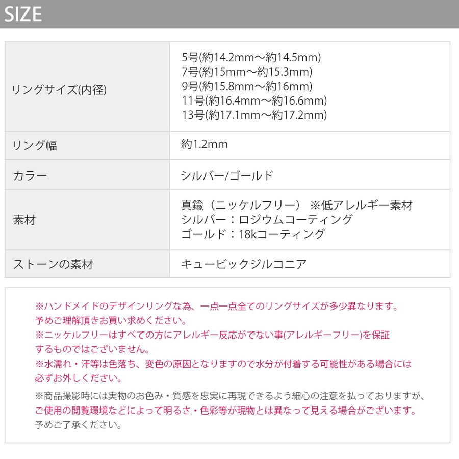 ※ハンドメイドのデザインリングな為、一点一点全てのリングサイズが多少異なります。