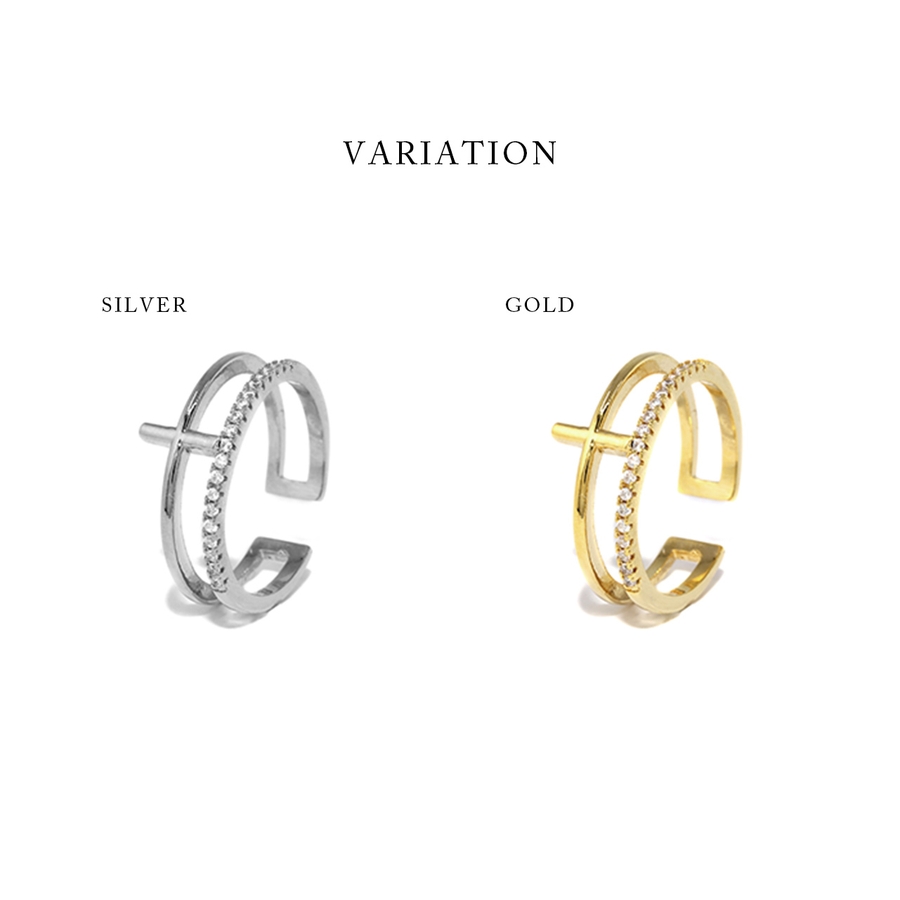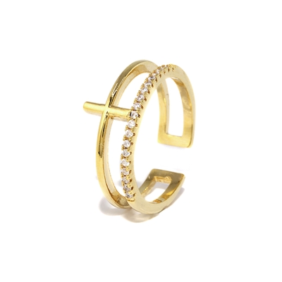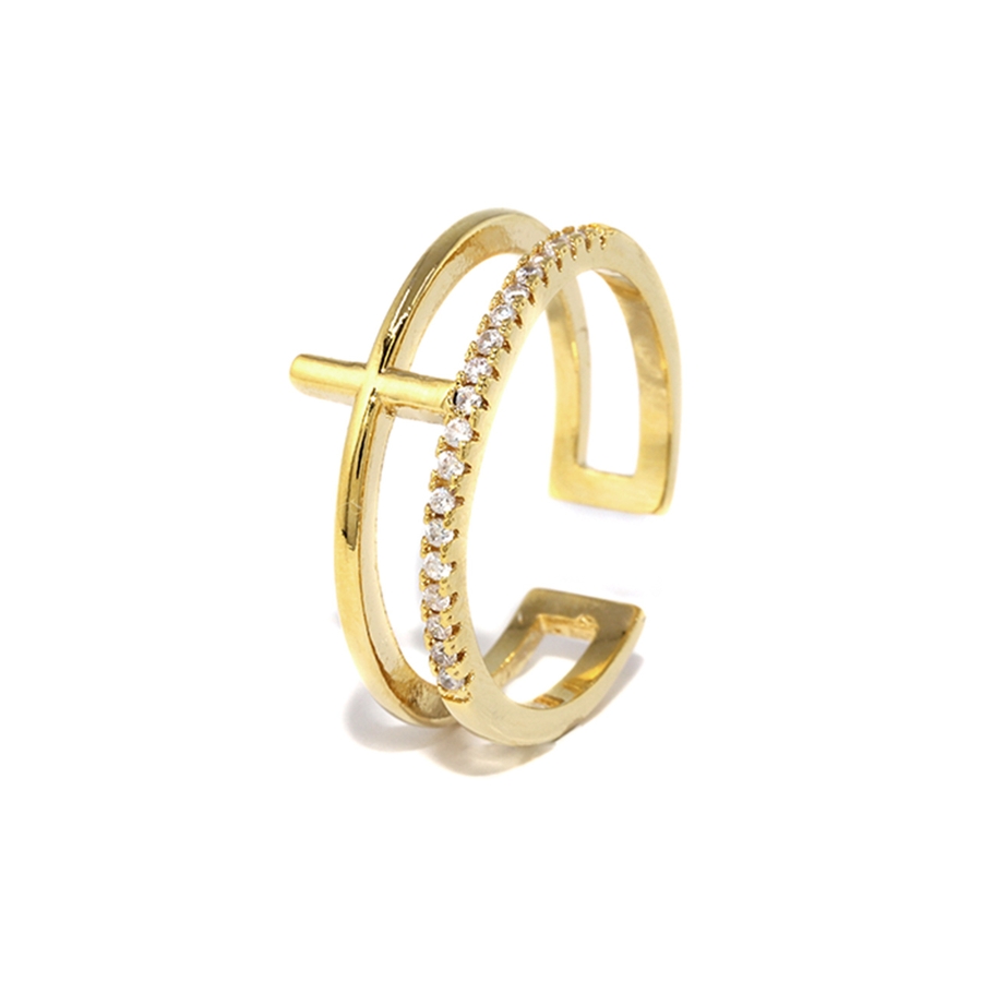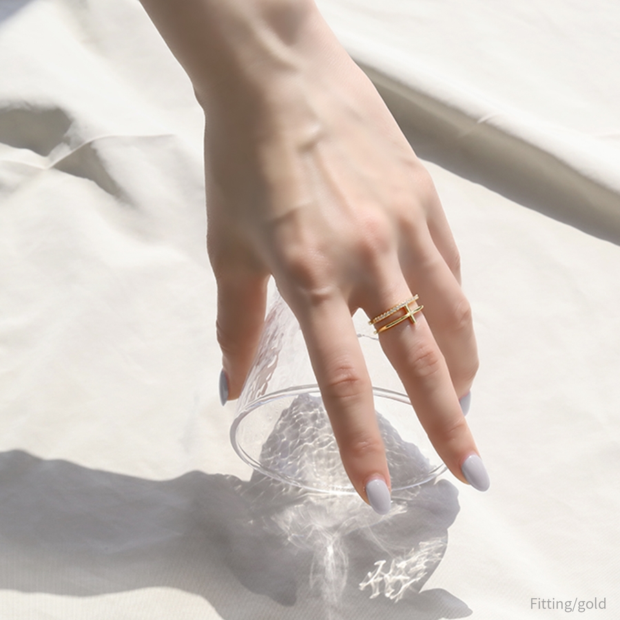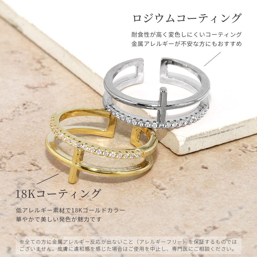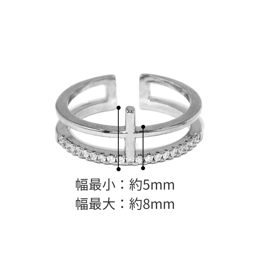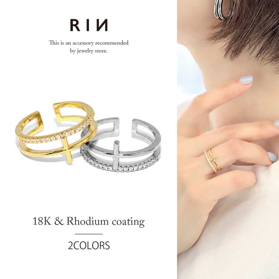 指輪リング キレイ2連ほそみ華奢 ジュエル十字クロスk18
