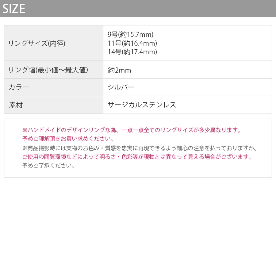※ハンドメイドのデザインリングな為、一点一点全てのリングサイズが多少異なりますので予めご理解頂きお買い求めください。