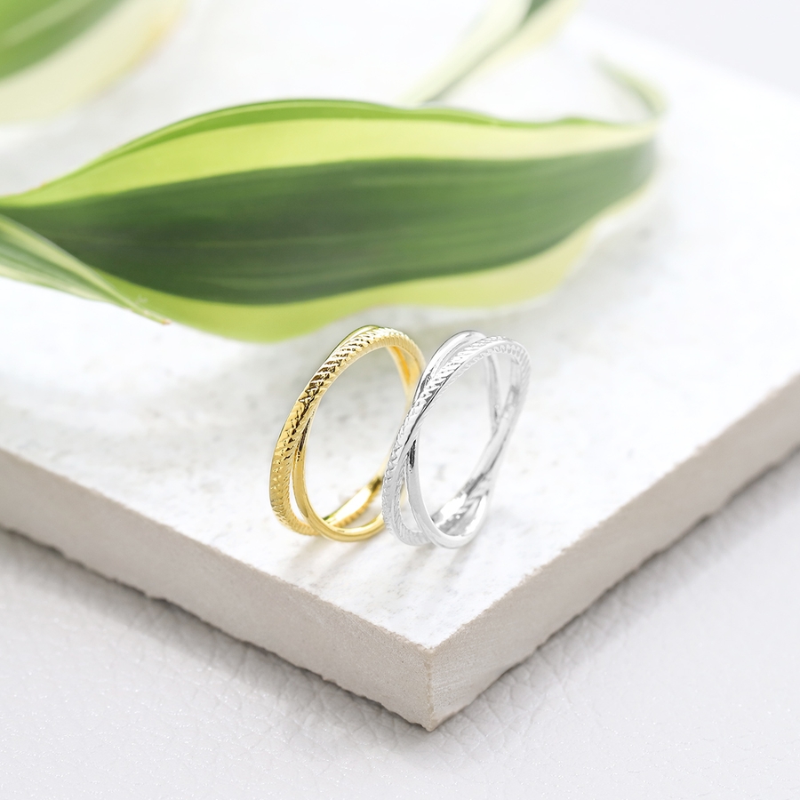 指輪リングクロスリング きれいダブルリング 洗練ファッションリング