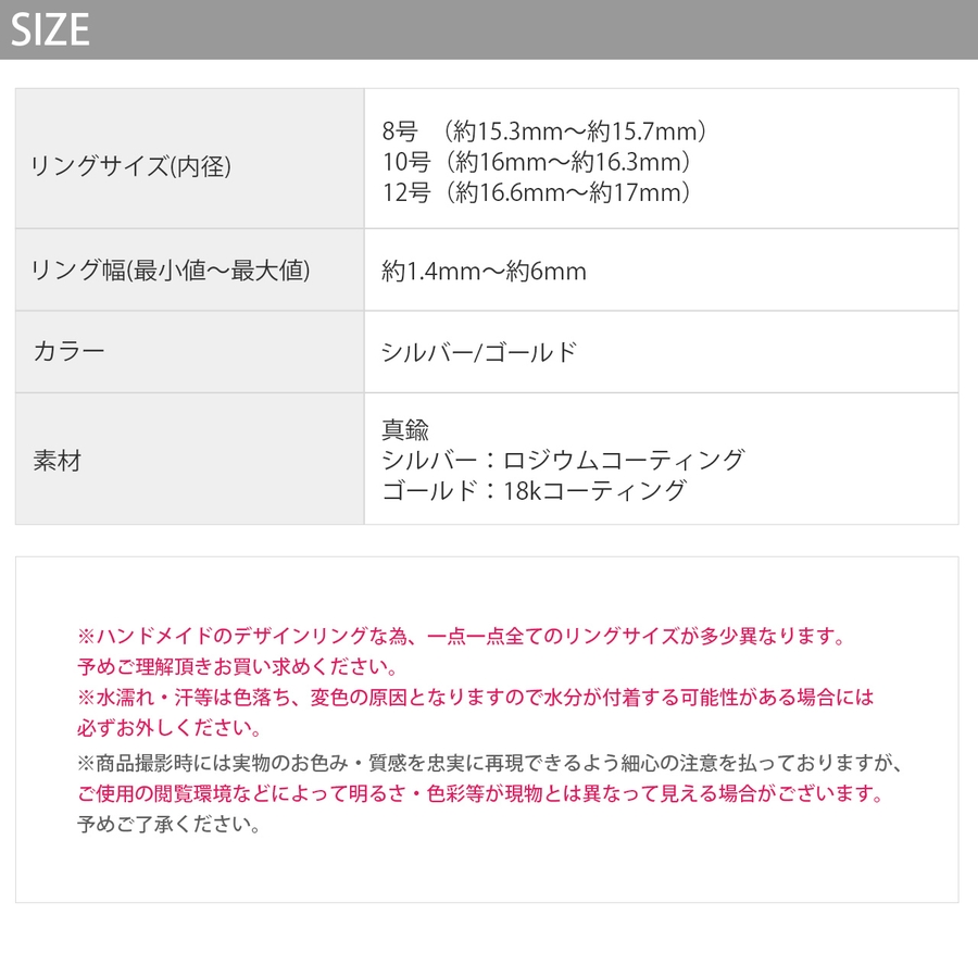 ※ハンドメイドのデザインリングな為、一点一点全てのリングサイズが多少異なりますので予めご理解頂きお買い求めください。