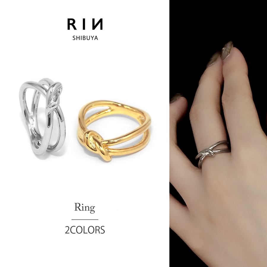 指輪リング 結び目2連リング トレンドknotアクセントデザインリング