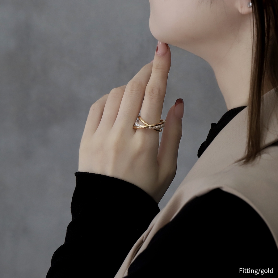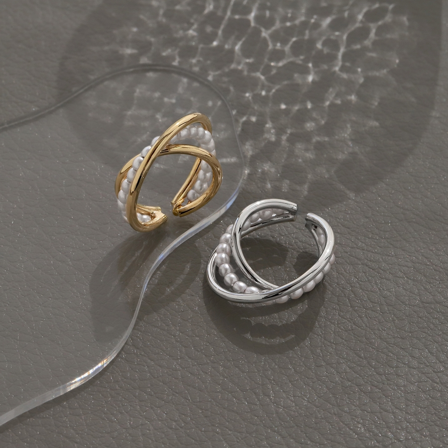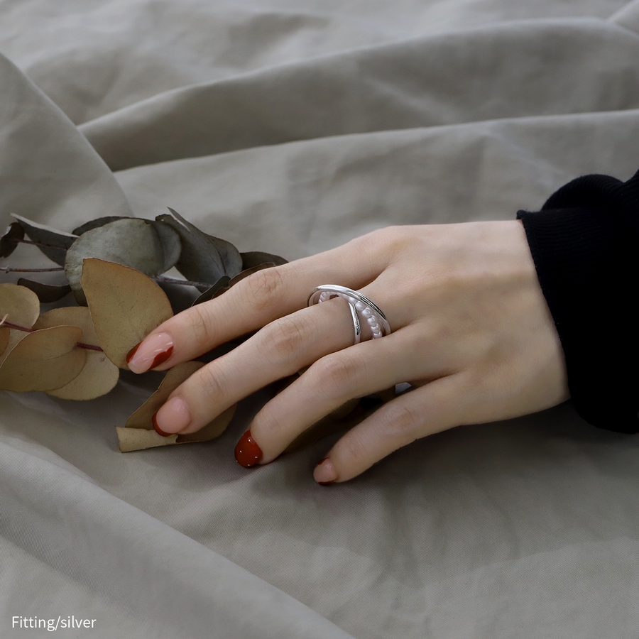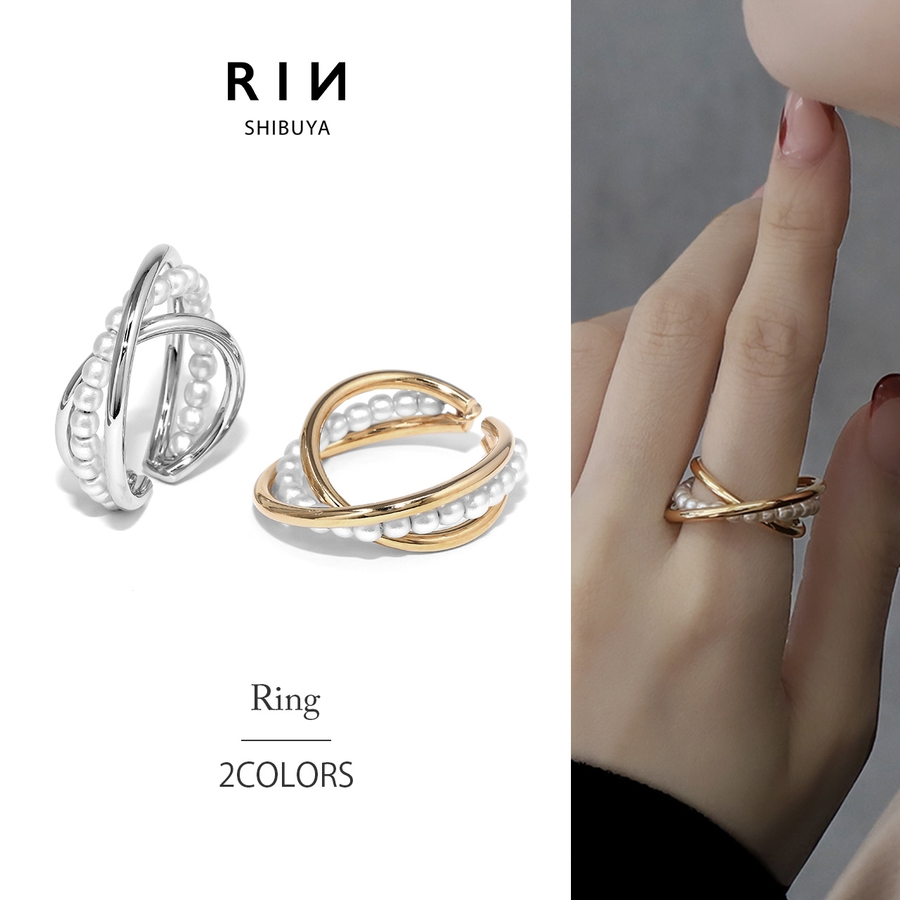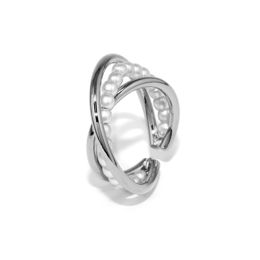指輪リング スタイリッシュクロスライン パールフリーサイズシックオープンリング