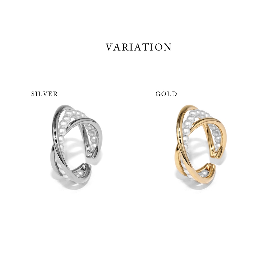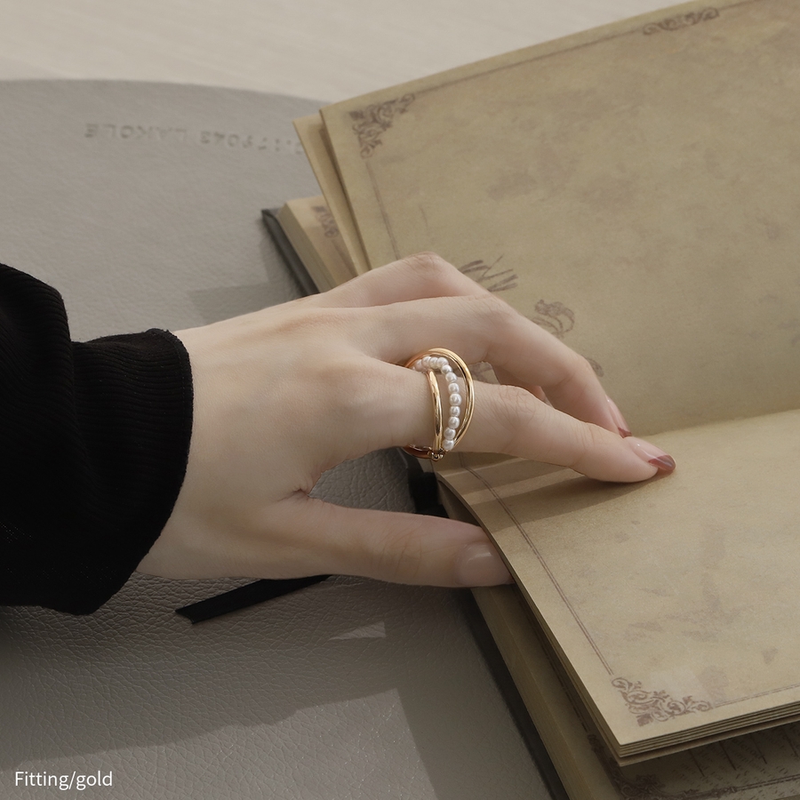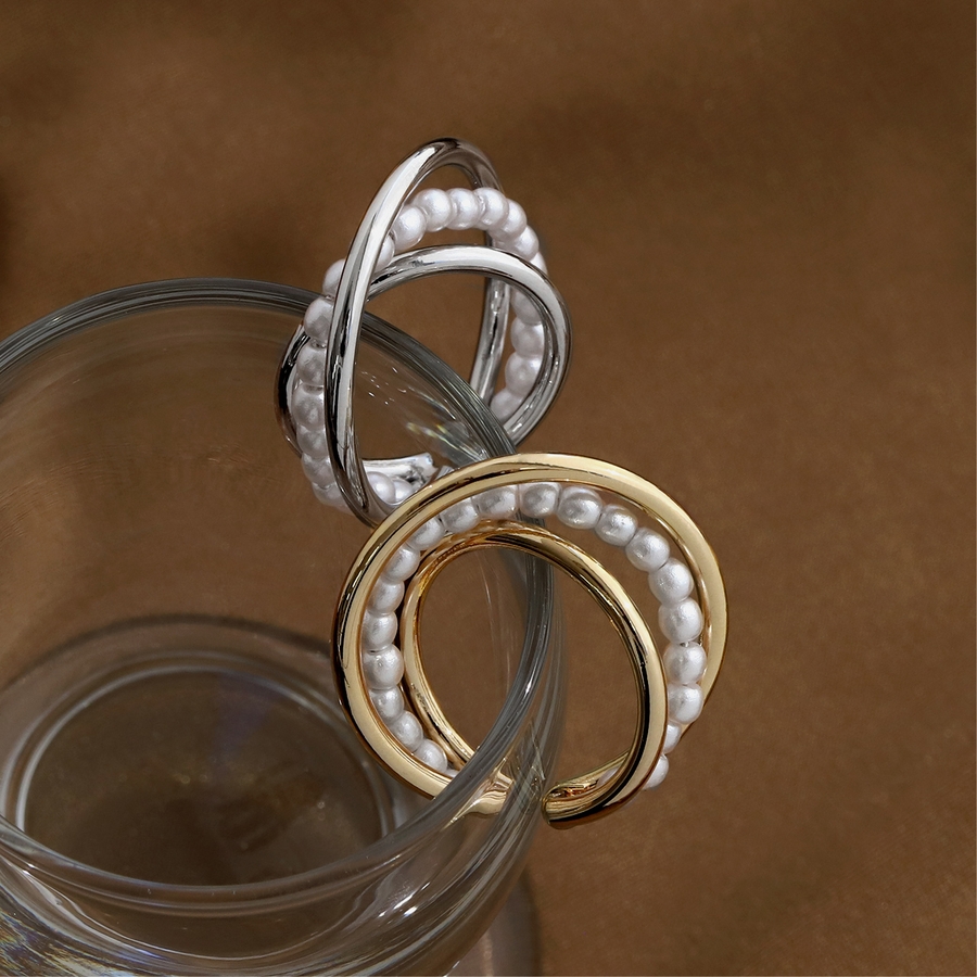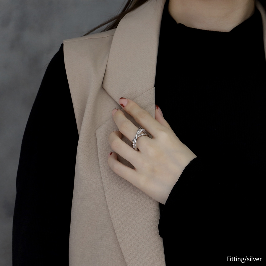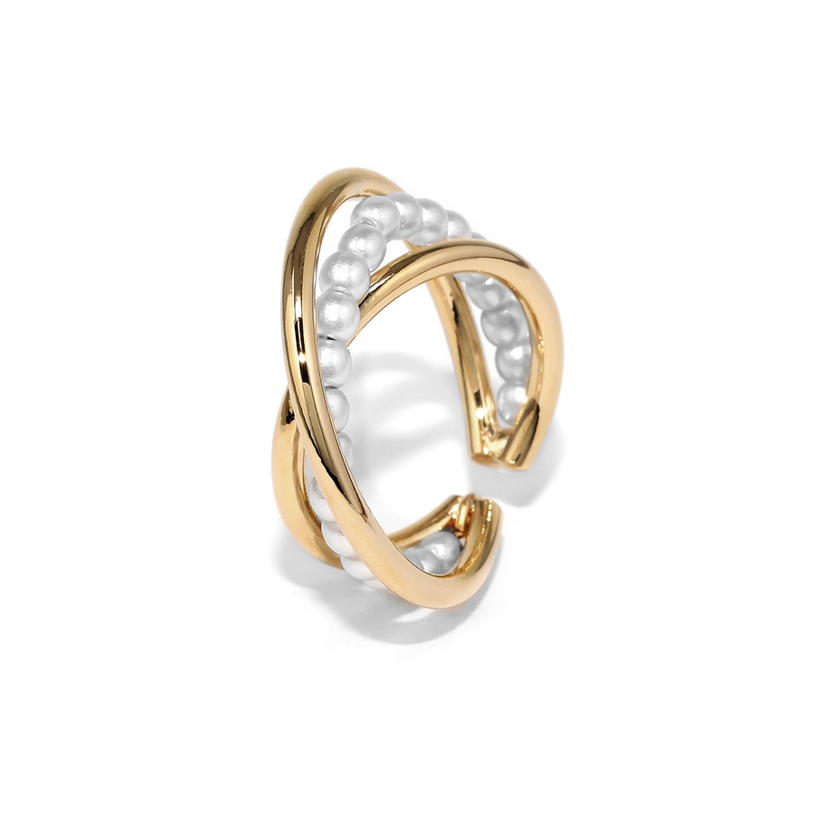 指輪リング スタイリッシュクロスライン パールフリーサイズシックオープンリング