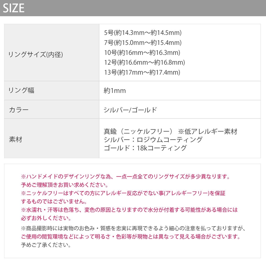 ※ハンドメイドのデザインリングな為、一点一点全てのリングサイズが多少異なりますので予めご理解頂きお買い求めください。