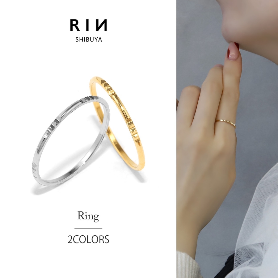 指輪レディースリング カッティング彫幾何学模様 華奢ほそめ