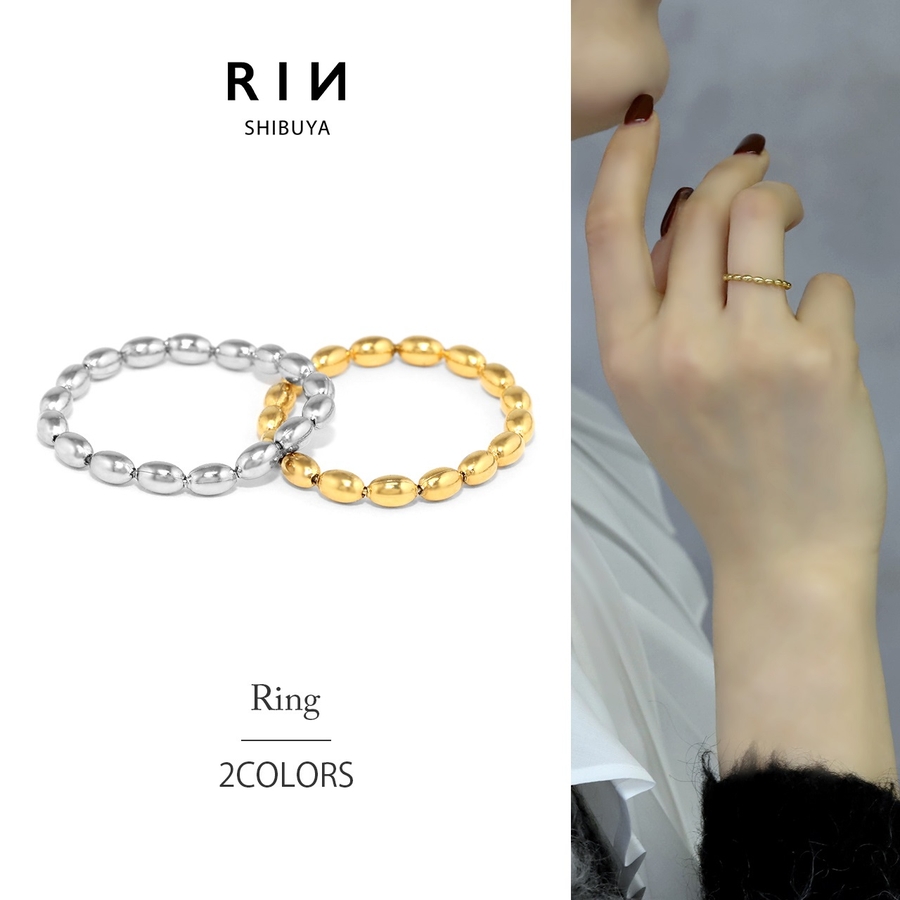 指輪レディースリング オーバルボールボールチェーンリング サージカルステンレス