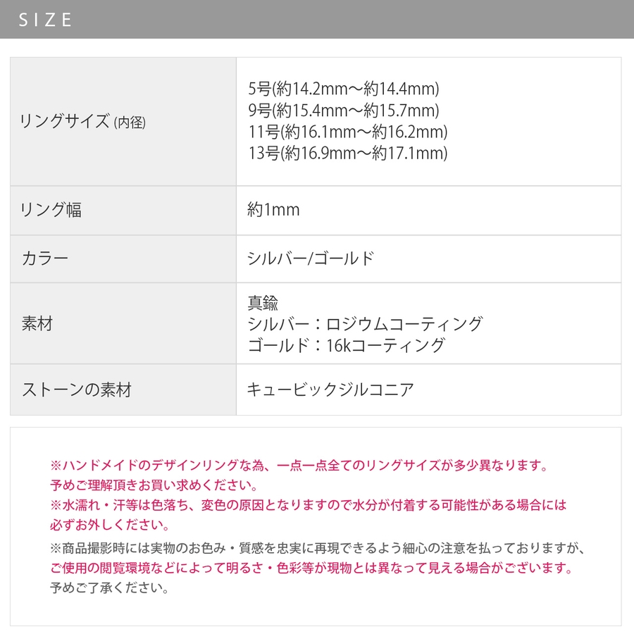 ※ハンドメイドのデザインリングな為、一点一点全てのリングサイズが多少異なりますので予めご理解頂きお買い求めください。
