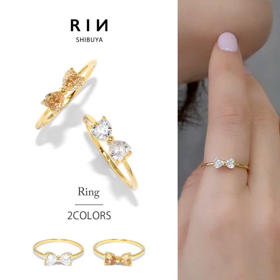 指輪レディースリング リボンキュービックジルコニアジュエル