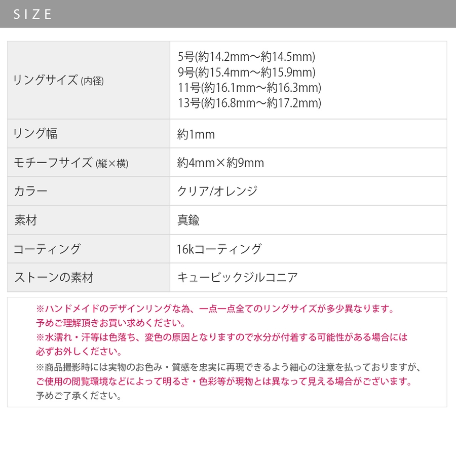 ※ハンドメイドのデザインリングな為、一点一点全てのリングサイズが多少異なりますので予めご理解頂きお買い求めください。