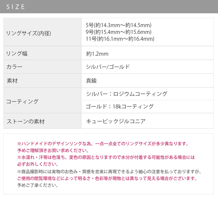 ※ハンドメイドのデザインリングな為、一点一点全てのリングサイズが多少異なりますので予めご理解頂きお買い求めください。