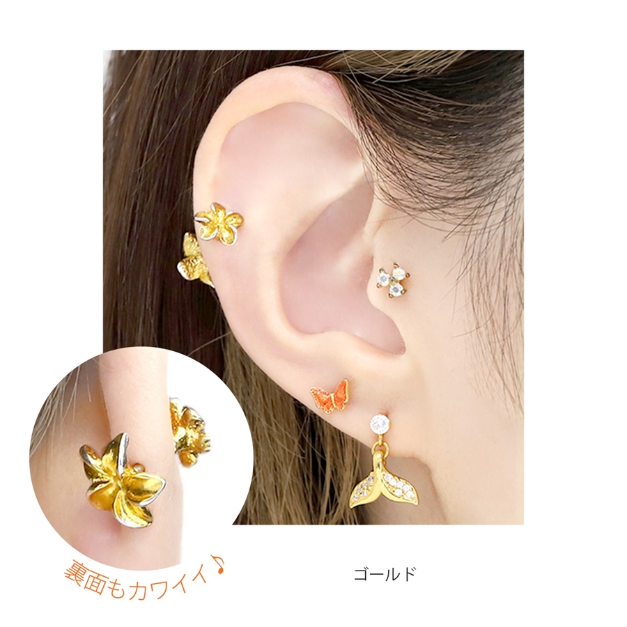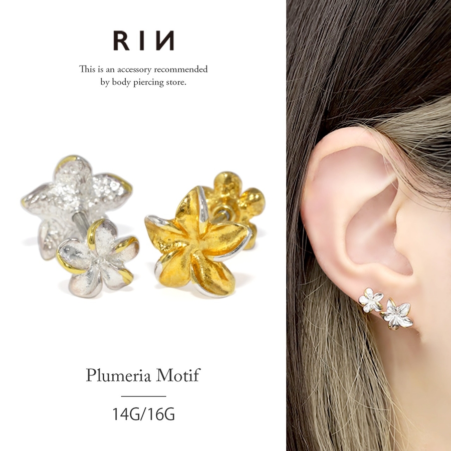 ボディピアス 花ハワイアン Wフェイスプルメリアフラワー