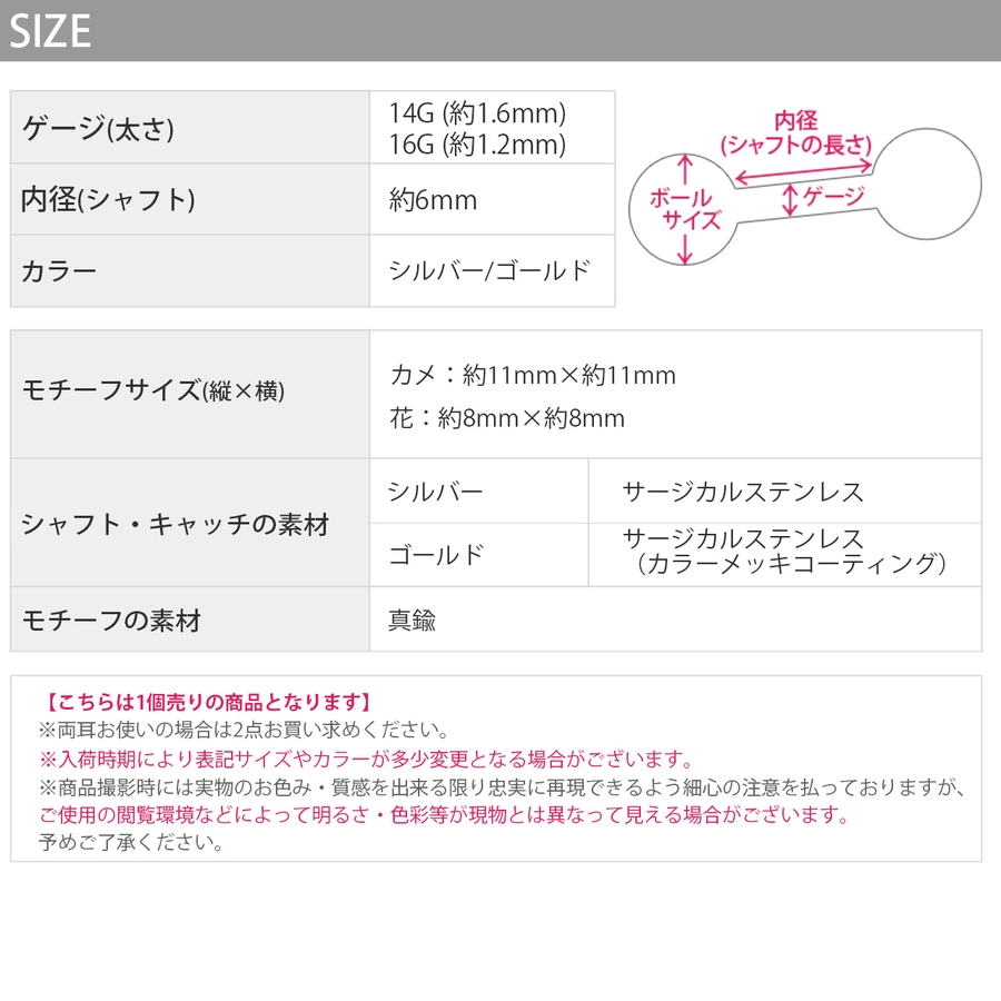 ゴールド:サージカルステンレス(カラーメッキコーティング)