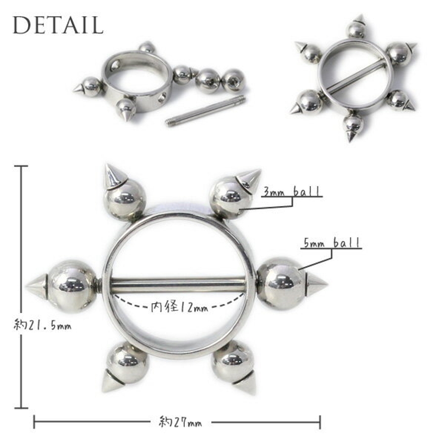 [14G]ニップルピアス0002 スパイクボールシールドピアス ボディピアス