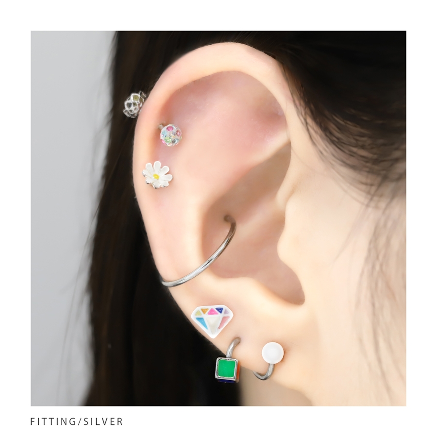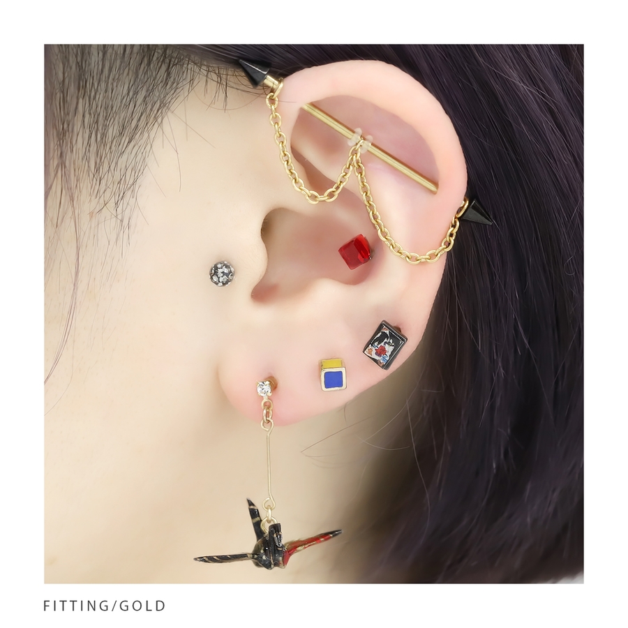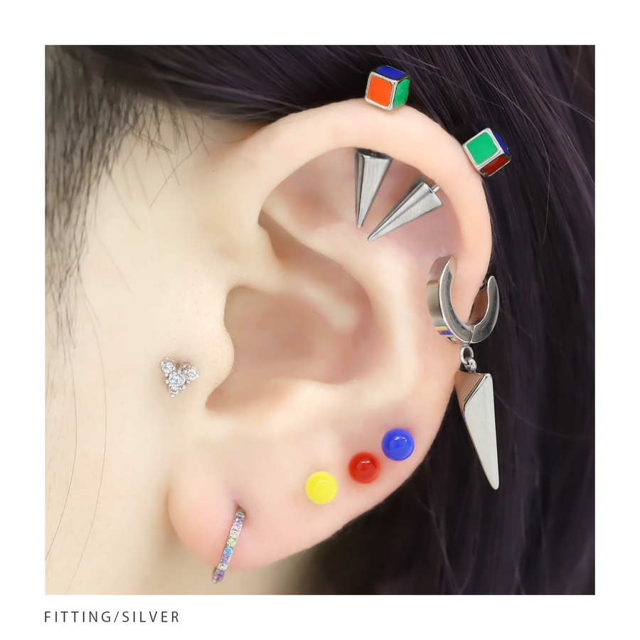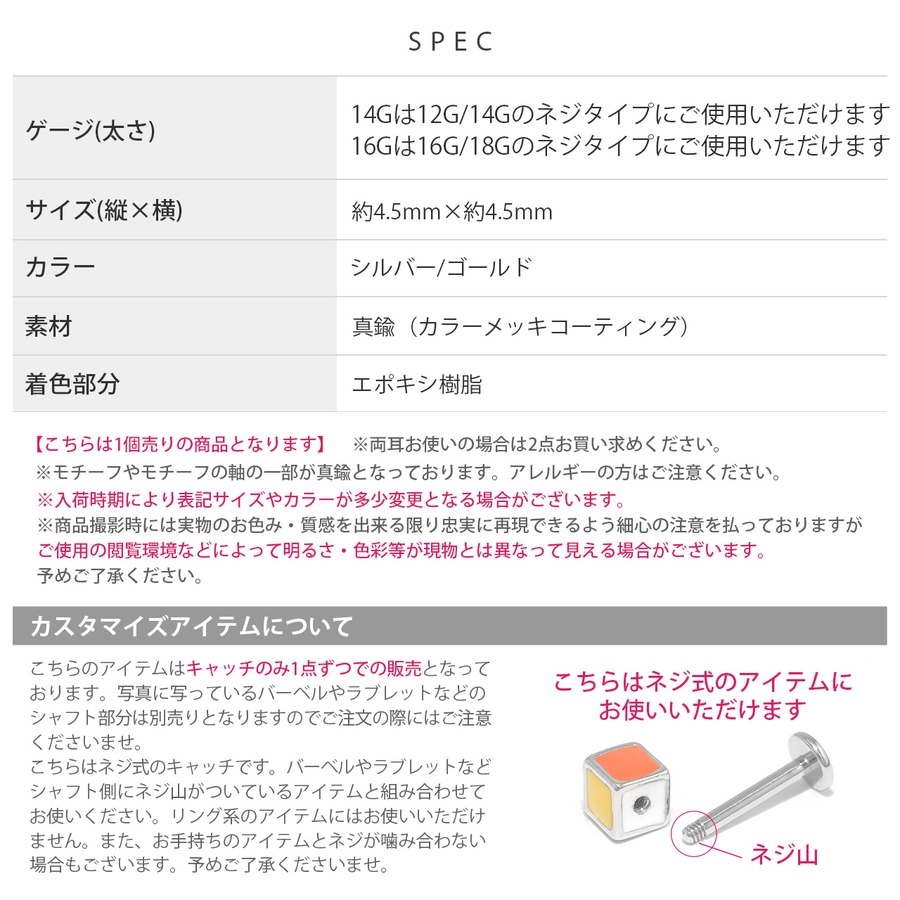 キャッチ軟骨ピアス キューブ四角カラフル カスタマイズ