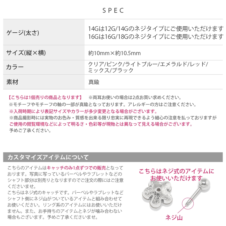 ボディピアス 16G キャッチ 14G 軟骨ピアス 花 18G フラワー 12G お花 ジュエル 14ゲージ 16ゲージ ネジ式 ボール パーツ カスタマイズ 12ゲージ 18ゲージ ボディーピアス 軟骨 ピアス ステンレス シルバー 銀 ぎん ギン ピンク ぴんく ブルー 青 グリーン 緑 ブラック 黒 クリア くりあ 耳 耳たぶ 軟骨用 かわいい 可愛い カワイイ ラブリー レディース メンズ ユニセックス 男女兼用 金属 アレルギー 対応 アクセサリー おすすめ ポイント消化 凛 軟骨用 ステンレス なんこつピアス ボディピアス専門店 りん キャッチ0123「BP」「CUS」「1cml」「bl」