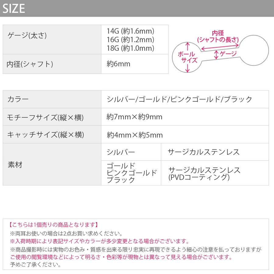 ゴールド ピンクゴールド ブラック:サージカルステンレス(PVDコーティング)