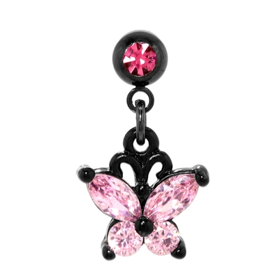 【ブラック/クリア】軟骨ピアス 蝶ちょうちょうバタフライ キュービックジルコニア