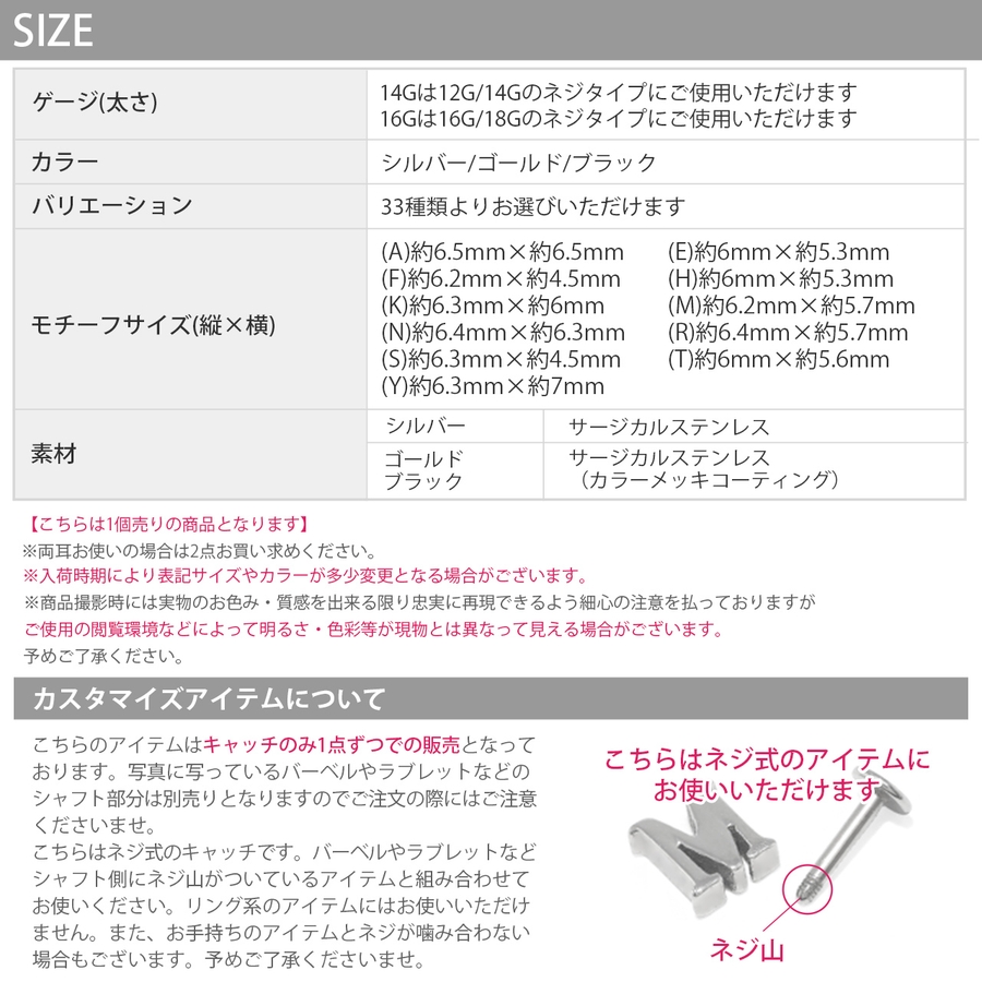 でも若干付けにくいのかな?とも思いましたが可愛いので満足ですさん (30代 / 女性 )購入アイテム:イニシャル Eカラー/ゲージ シルバー・16G(18Gにも使用可能) - A
