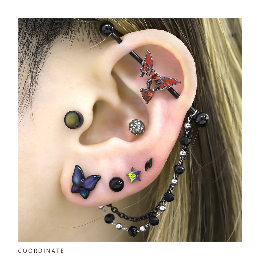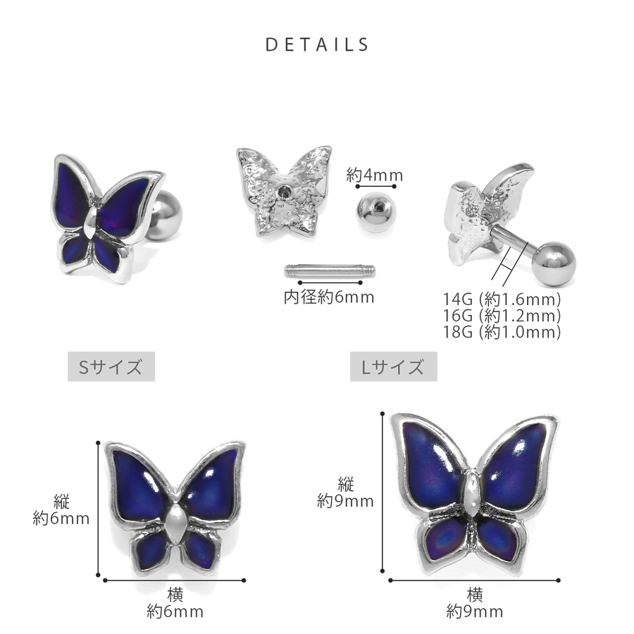 温度で色が変わる不思議なピアス バタフライ 軟骨ピアス
