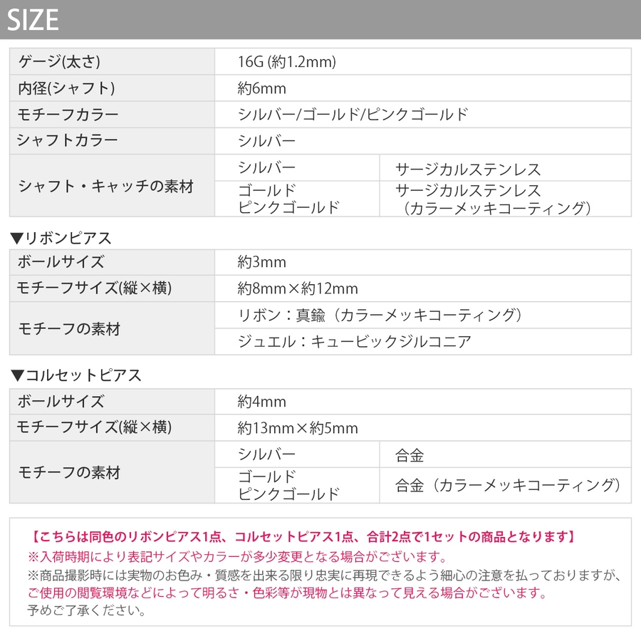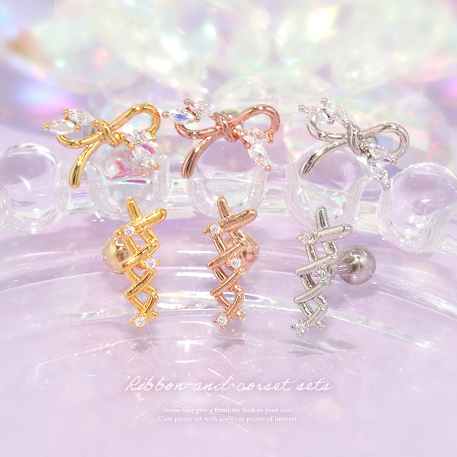 【こちらは同色のリボンピアス1点、コルセットピアス1点、合計2点で1セットの商品となります】