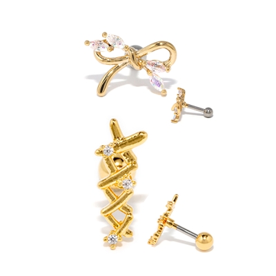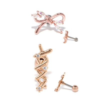 軟骨ピアス リボンコルセットジュエル シルバーゴールドピンクゴールド