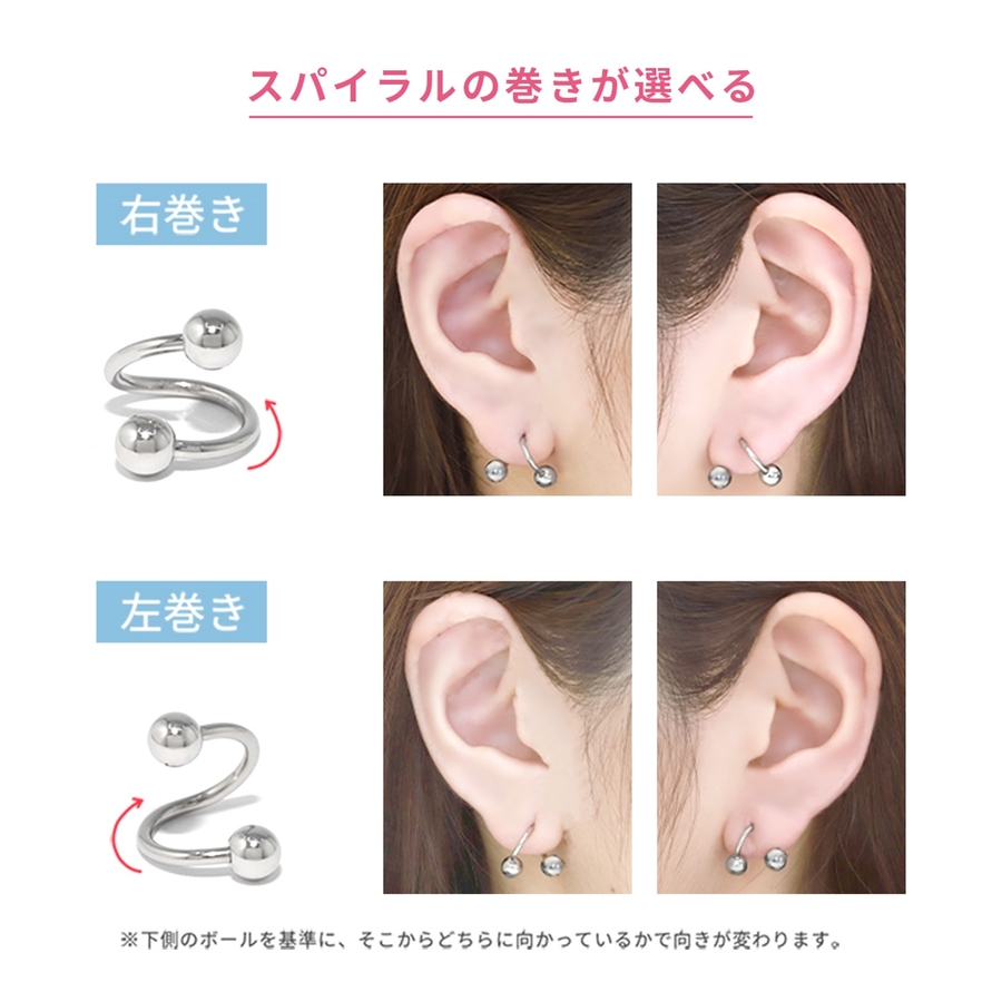 【スパイラルバーベル内径】約6mm 約8mm 約10mm