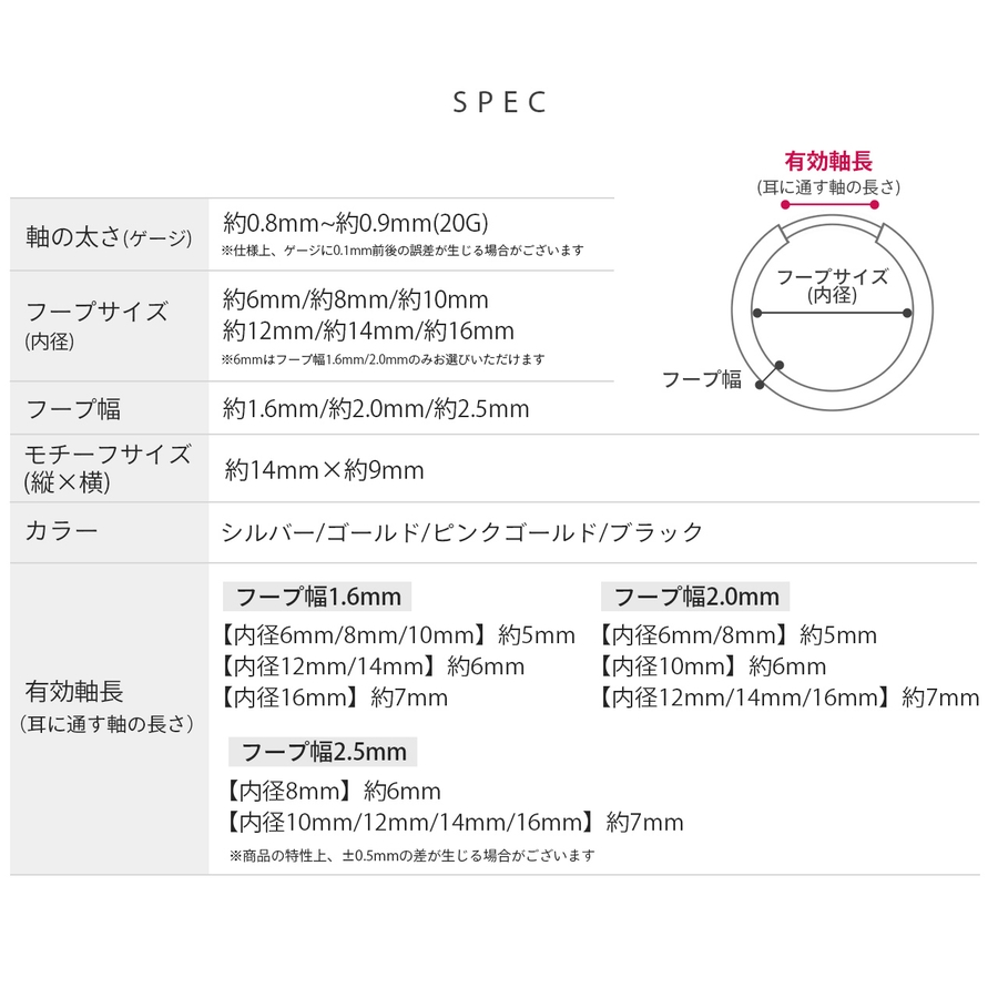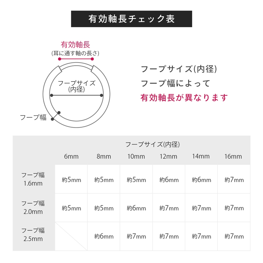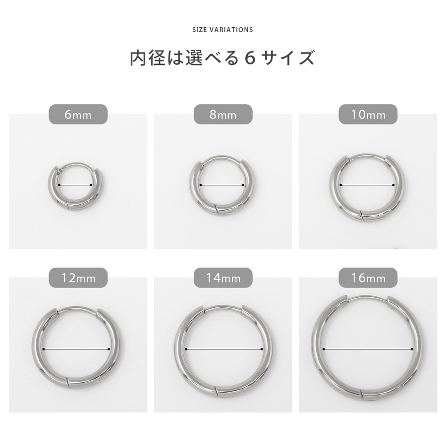 【フープ幅2.5mm】(8)約6mm/(10)約7mm/(12)約7mm/(14)約7mm/(16)約7mm